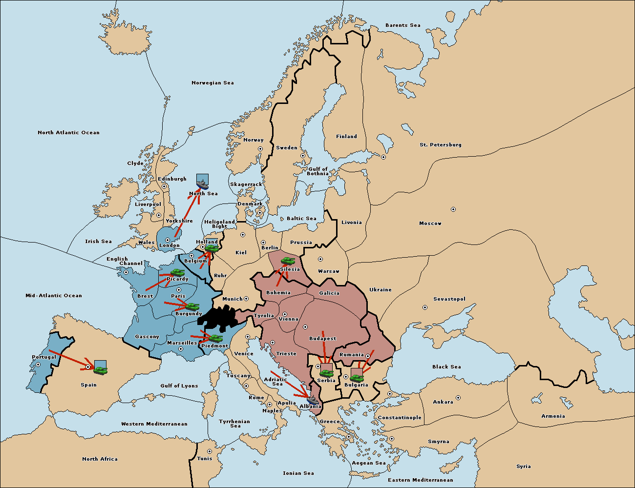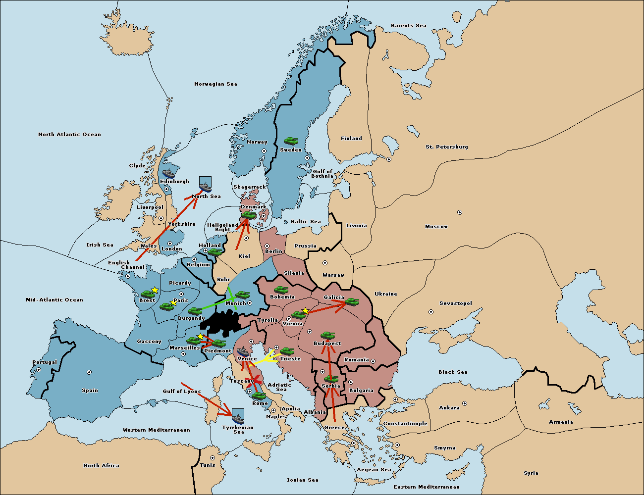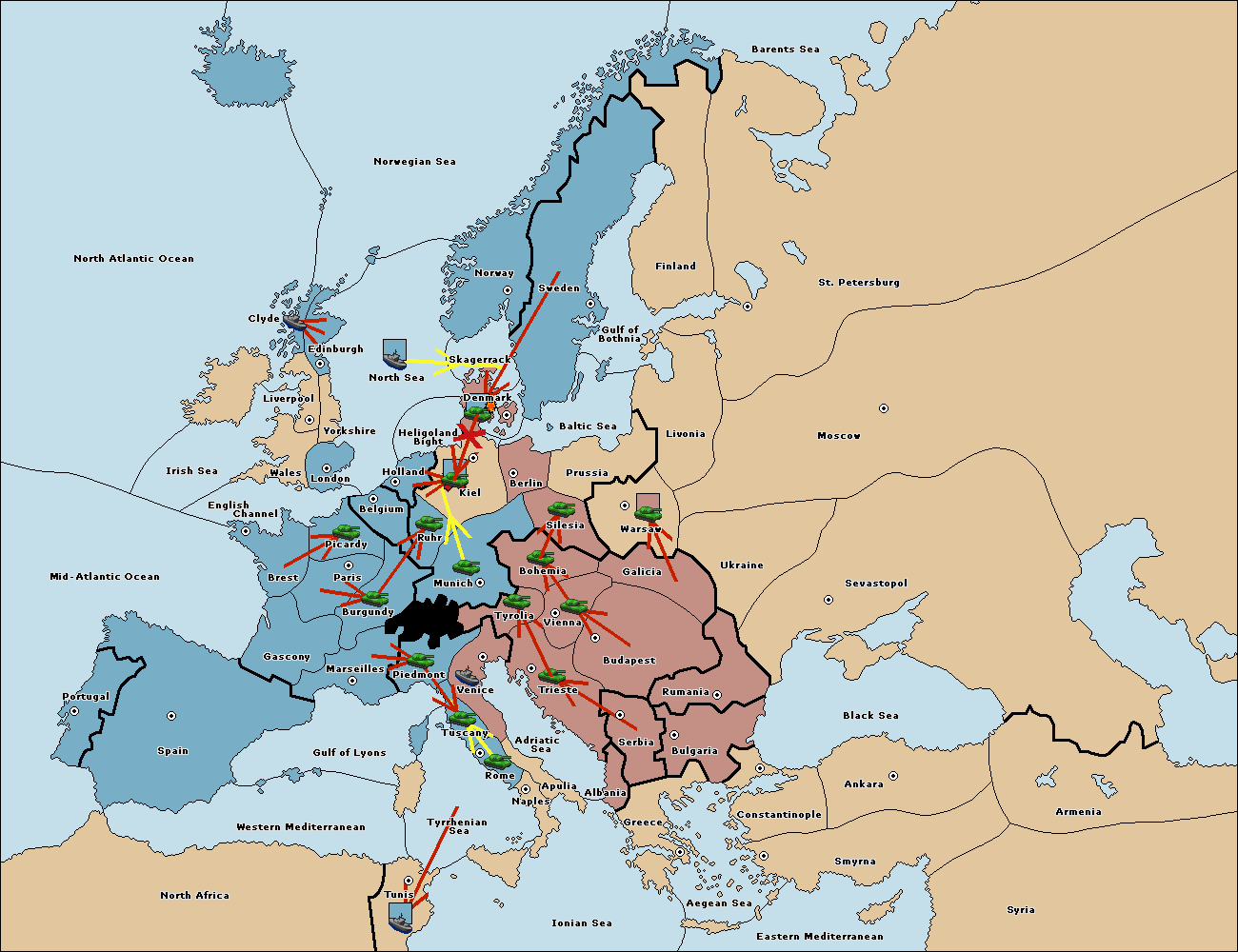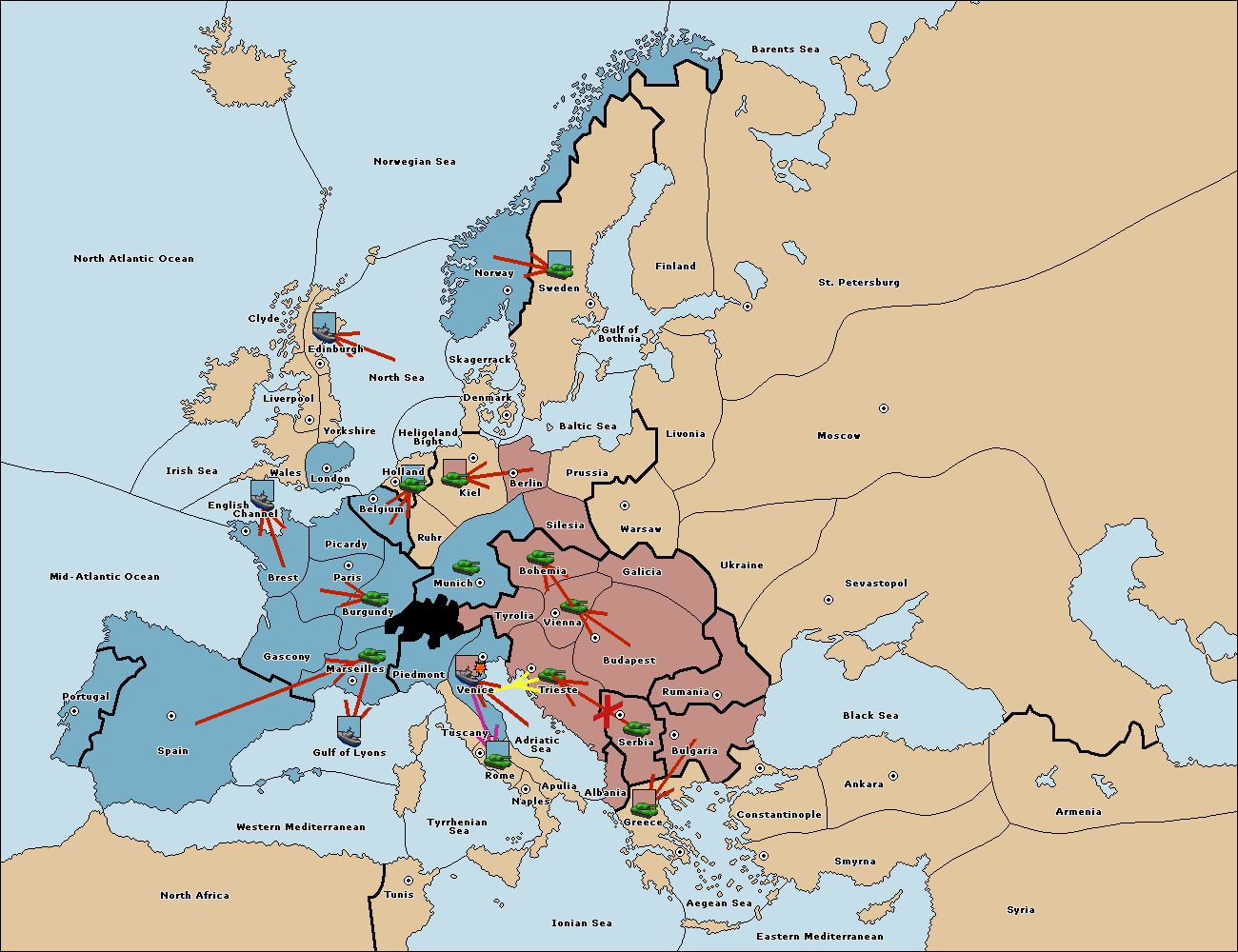 The fleet at Gulf of Lyons move to Tyrrhenian Sea.