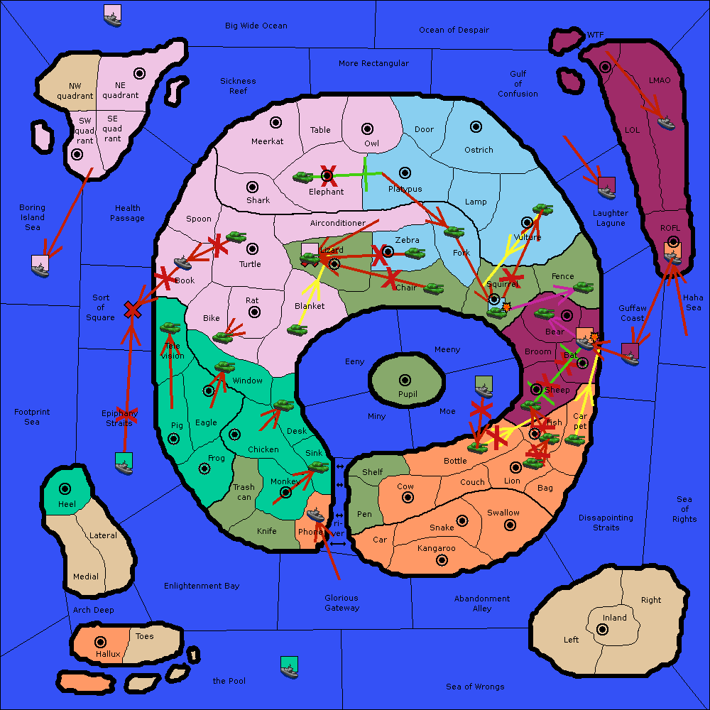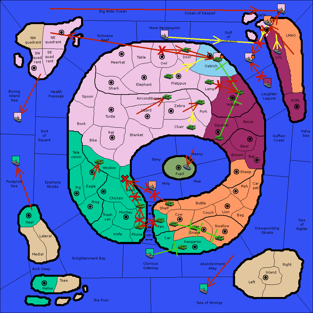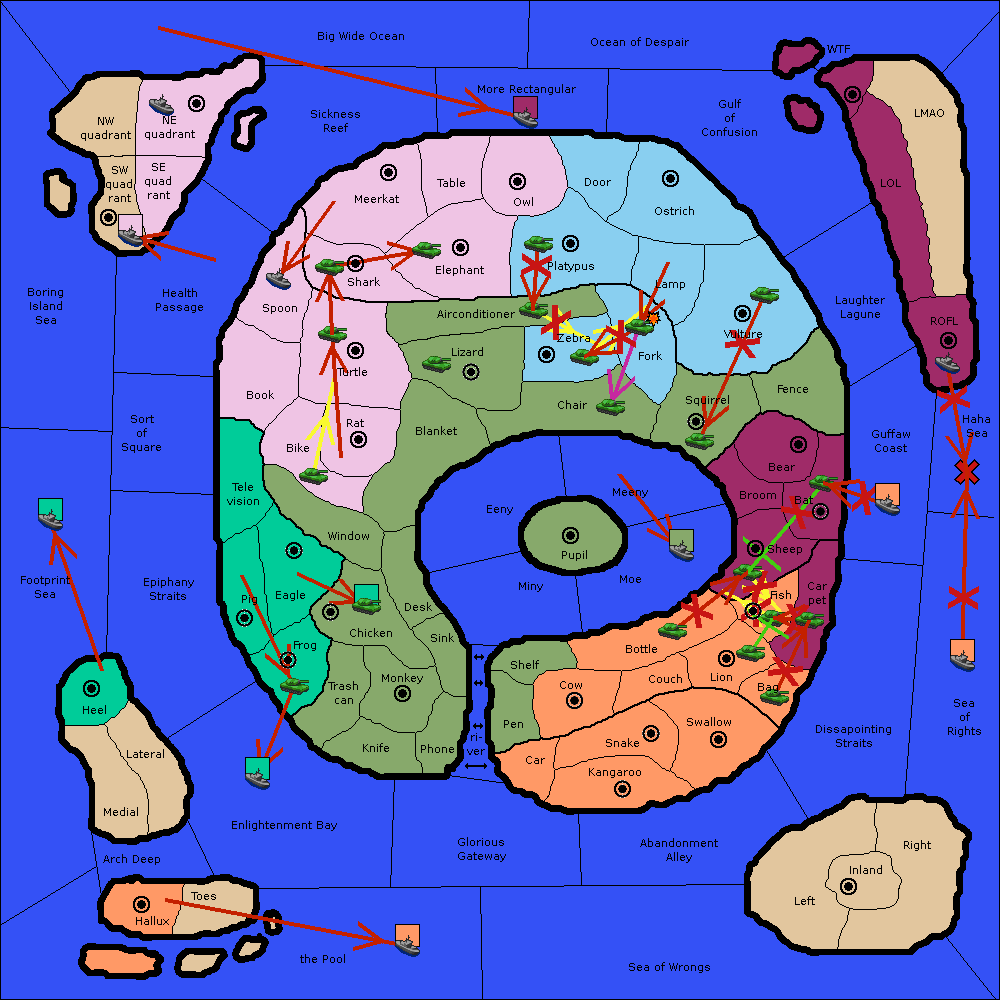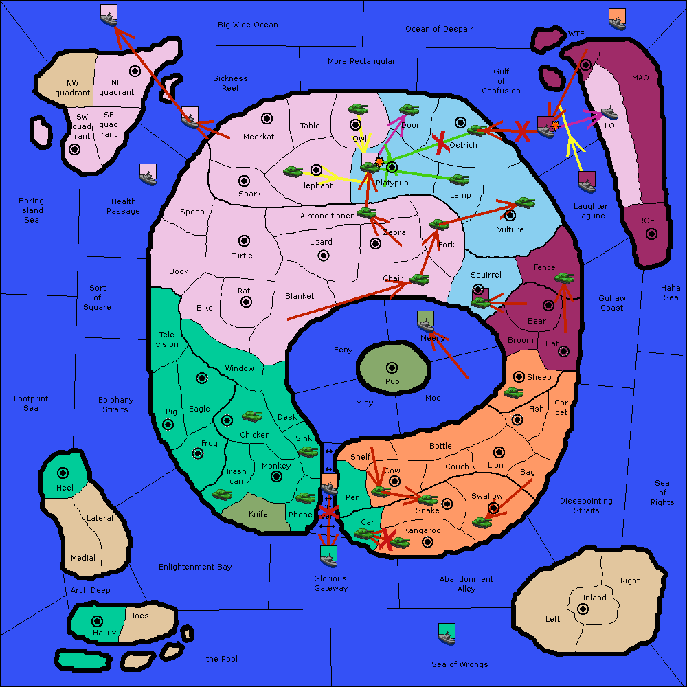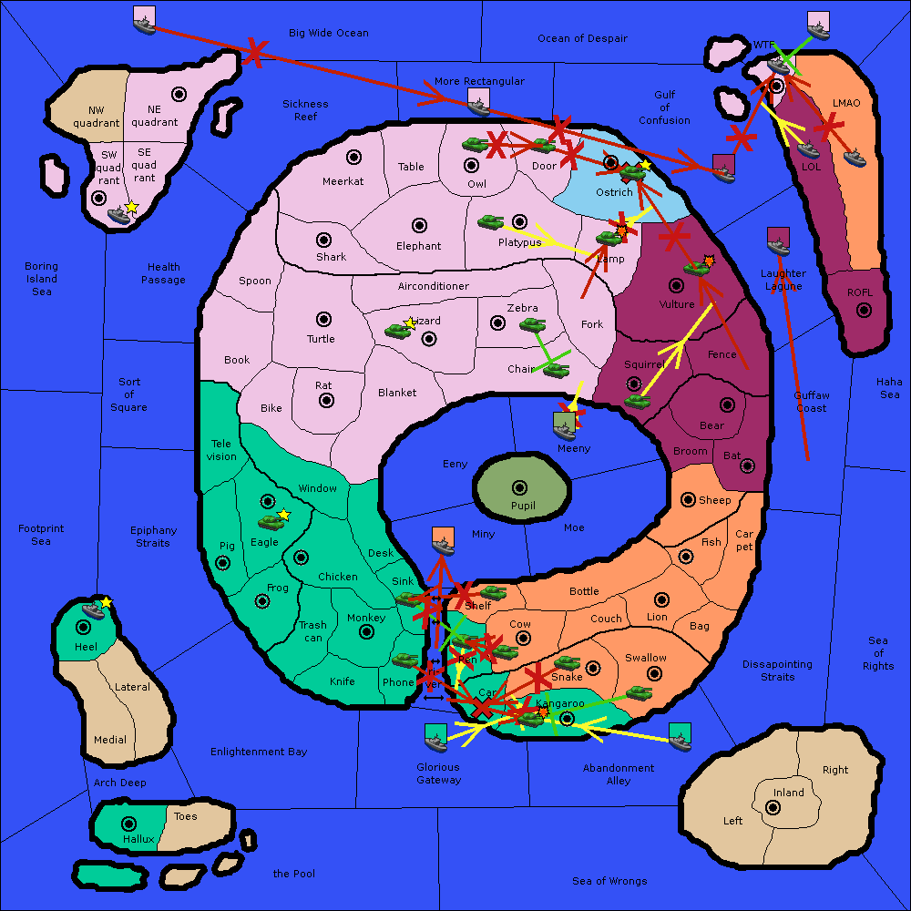 The fleet at Dissapointing Straits move to Guffaw Coast.