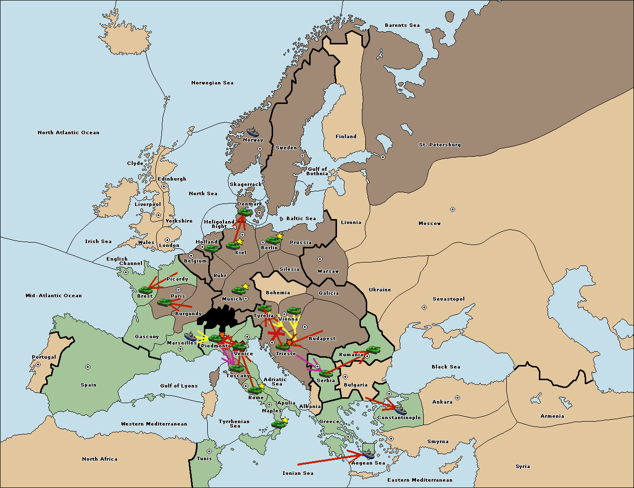 The fleet at Bulgaria (South Coast) move to Constantinople.