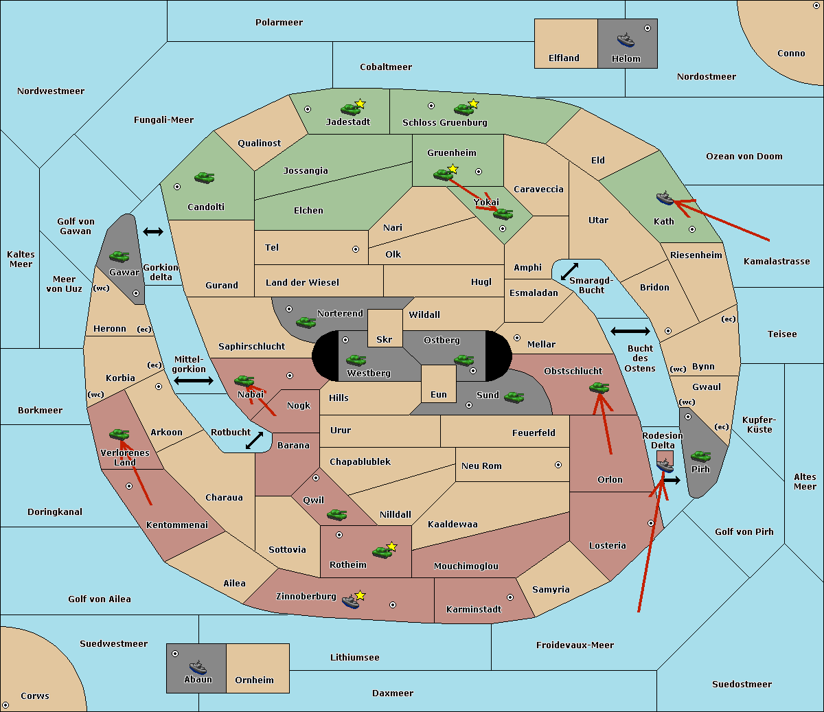 The fleet at Schloss Gruenburg move to Ozean von Doom.