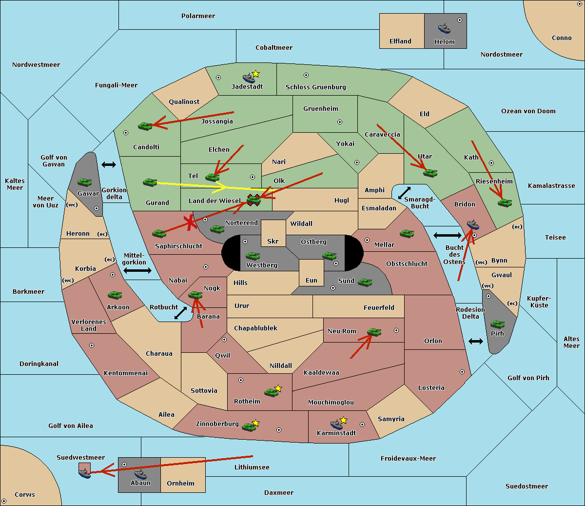 The army at Saphirschlucht move to Land der Wiesel.