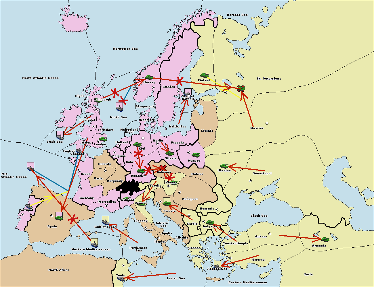 The fleet at Bulgaria (South Coast) move to Aegean Sea.