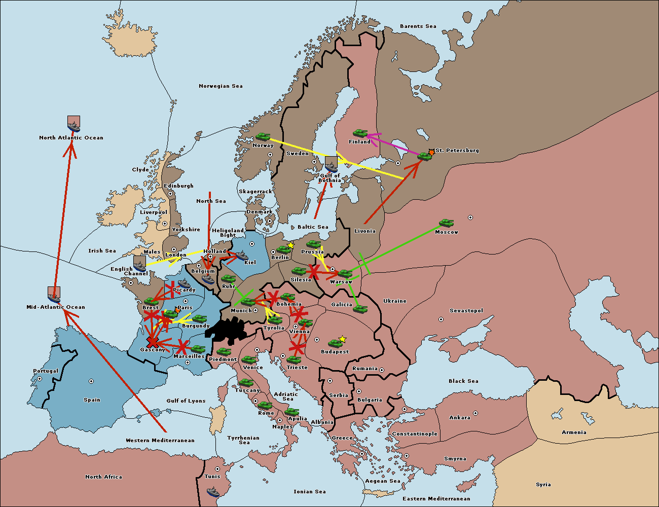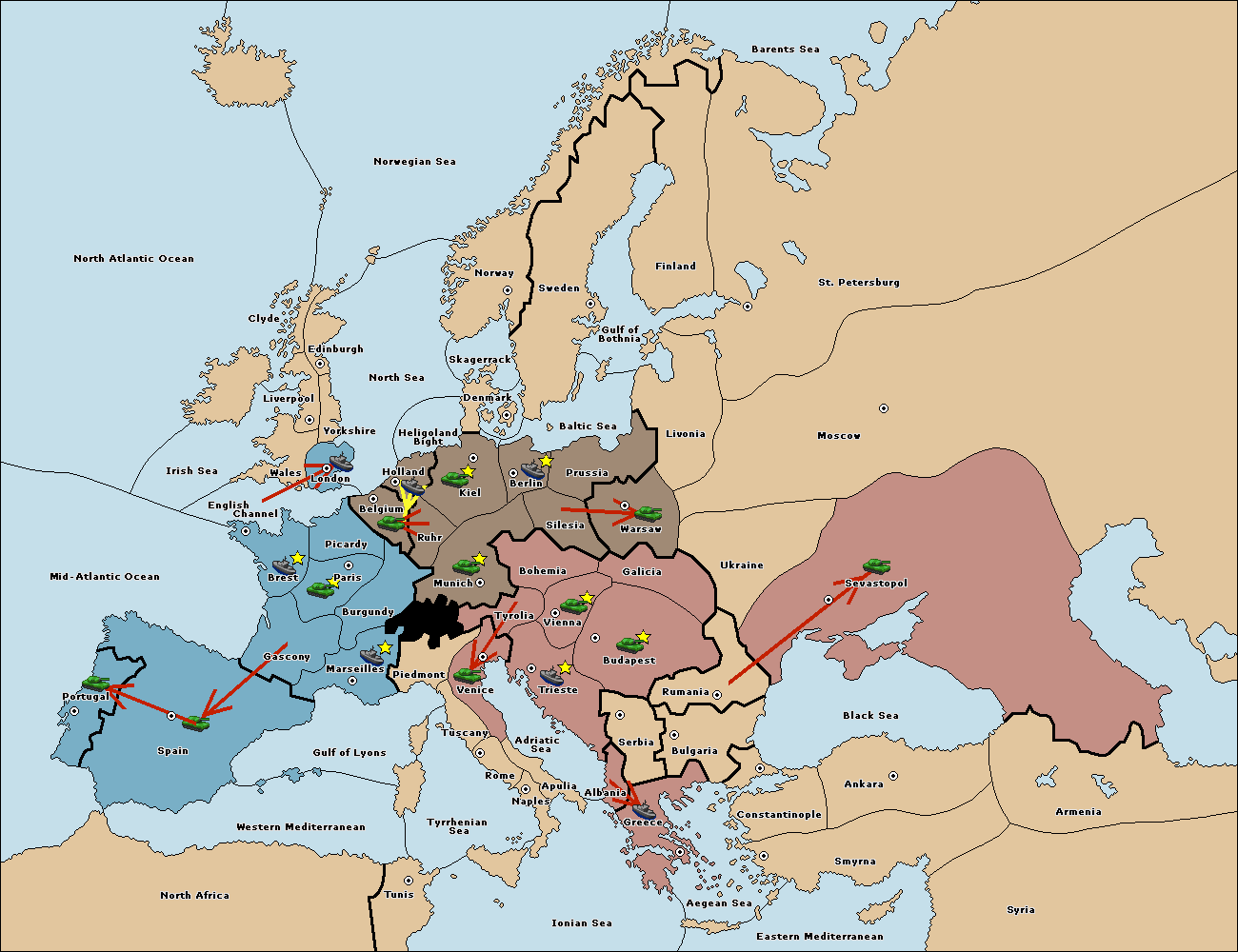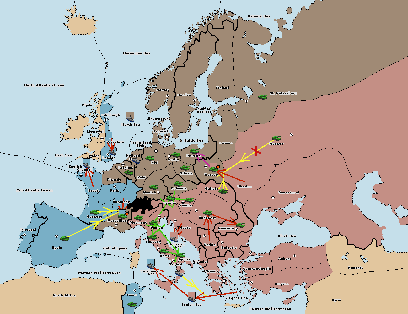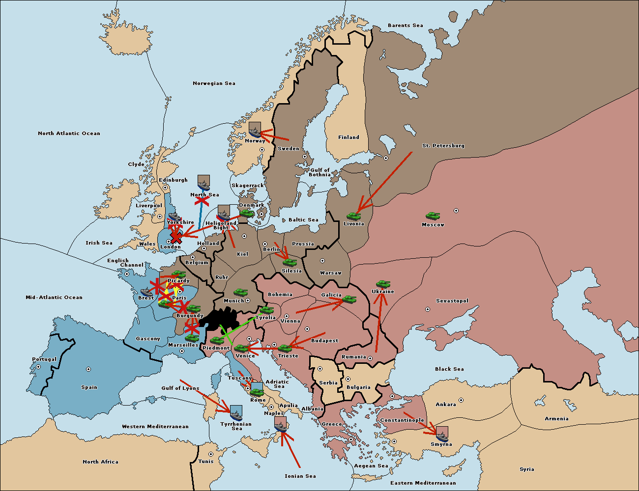 The fleet at Bulgaria (South Coast) move to Constantinople.