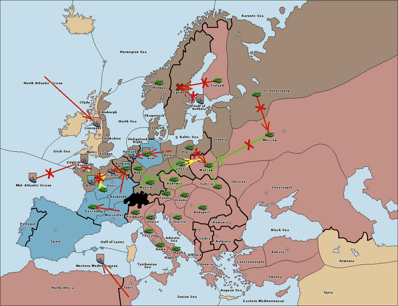 The fleet at Gulf of Lyons move to Tyrrhenian Sea.