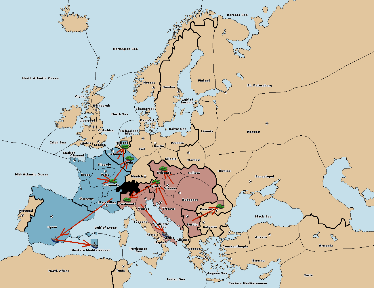 The fleet at Spain (South Coast) move to Western Mediterranean.