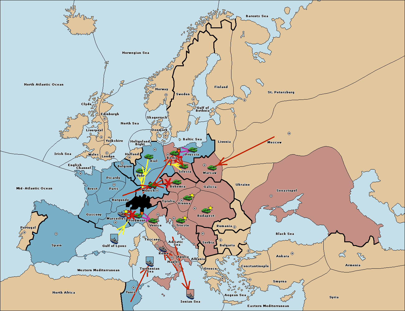 The fleet at Gulf of Lyons move to Tyrrhenian Sea.