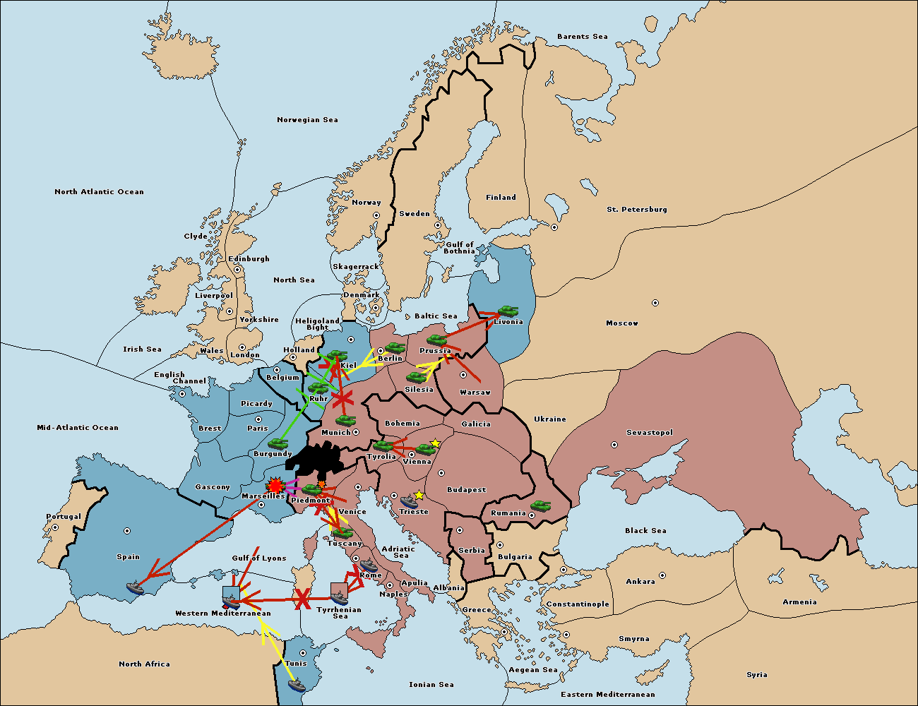 The fleet at Spain (South Coast) move to Marseilles.