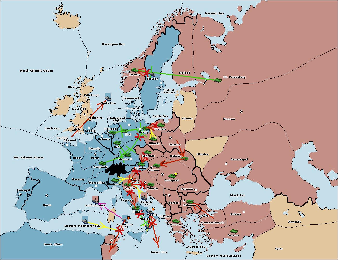 The fleet at Gulf of Lyons move to Tyrrhenian Sea.