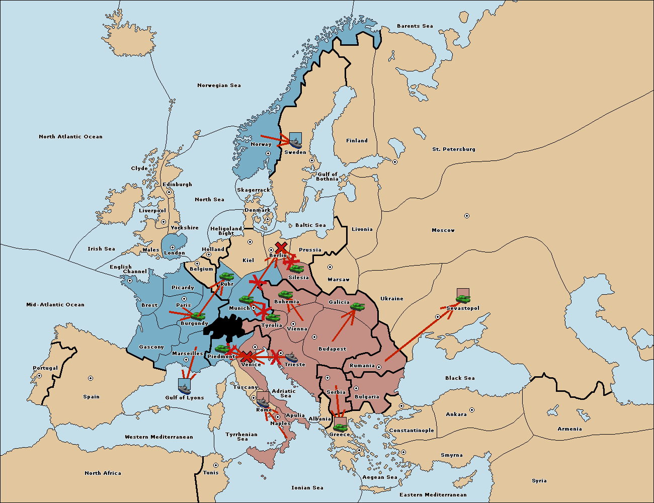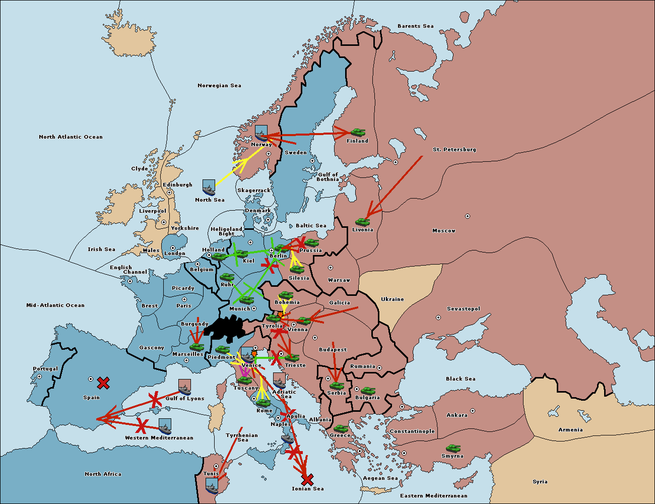 The army at Tyrolia move to Trieste.