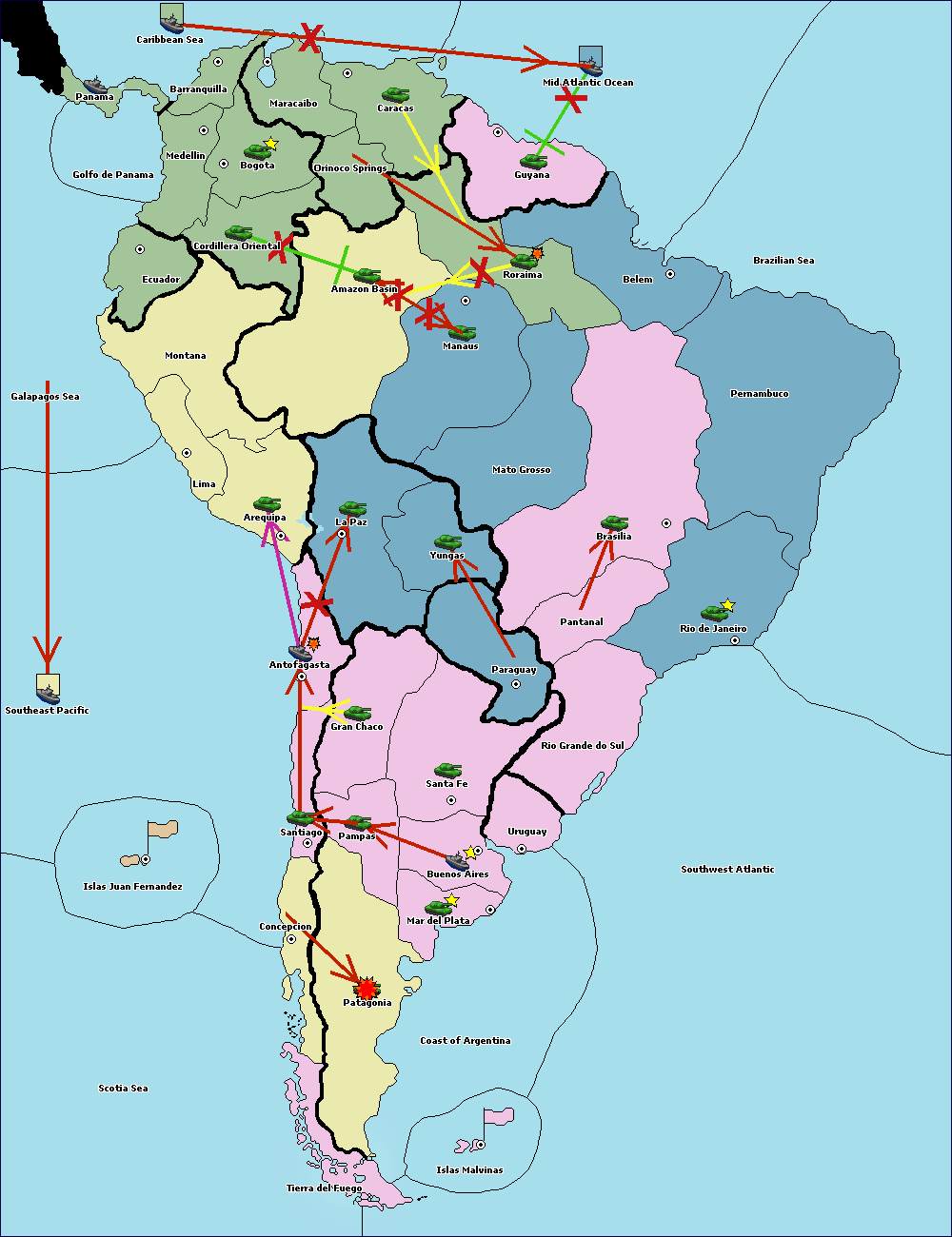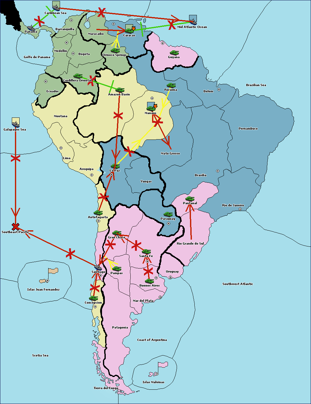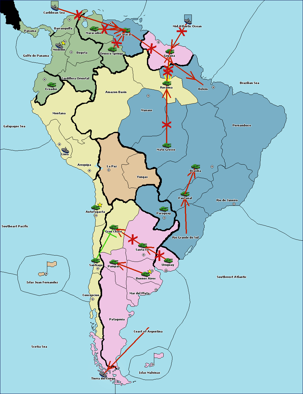 The army at Orinoco Springs support move to Caracas from Mid Atlantic Ocean.