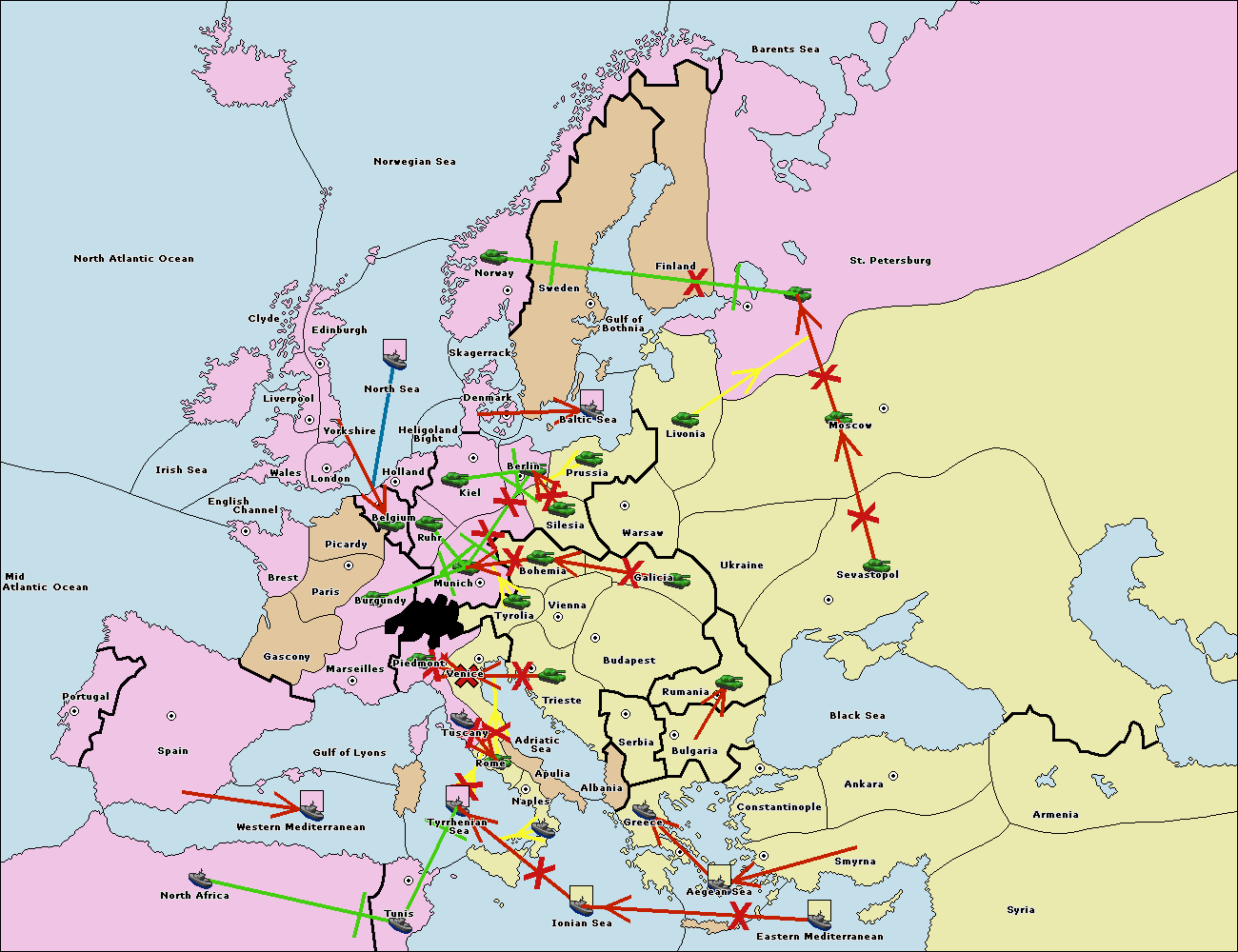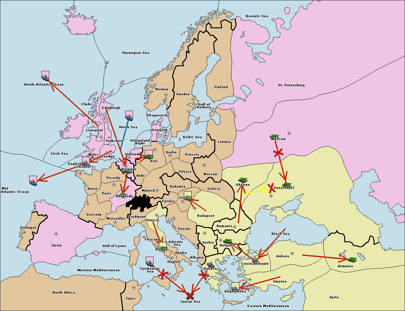 The fleet at Mid-Atlantic Ocean move to Western Mediterranean.