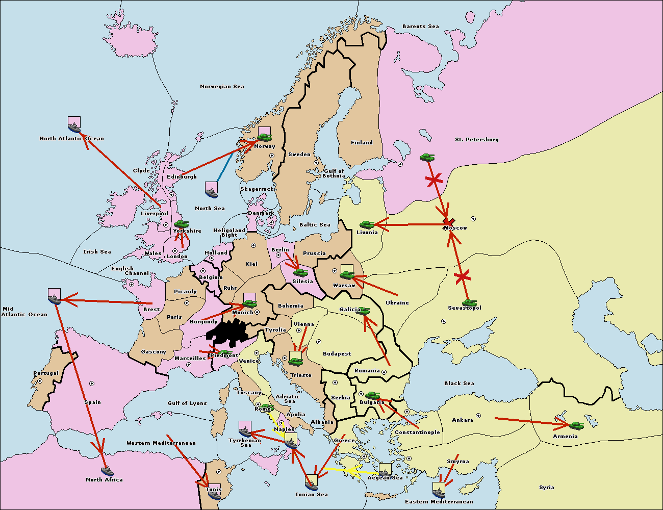 The fleet at Tyrrhenian Sea support hold to Tunis.