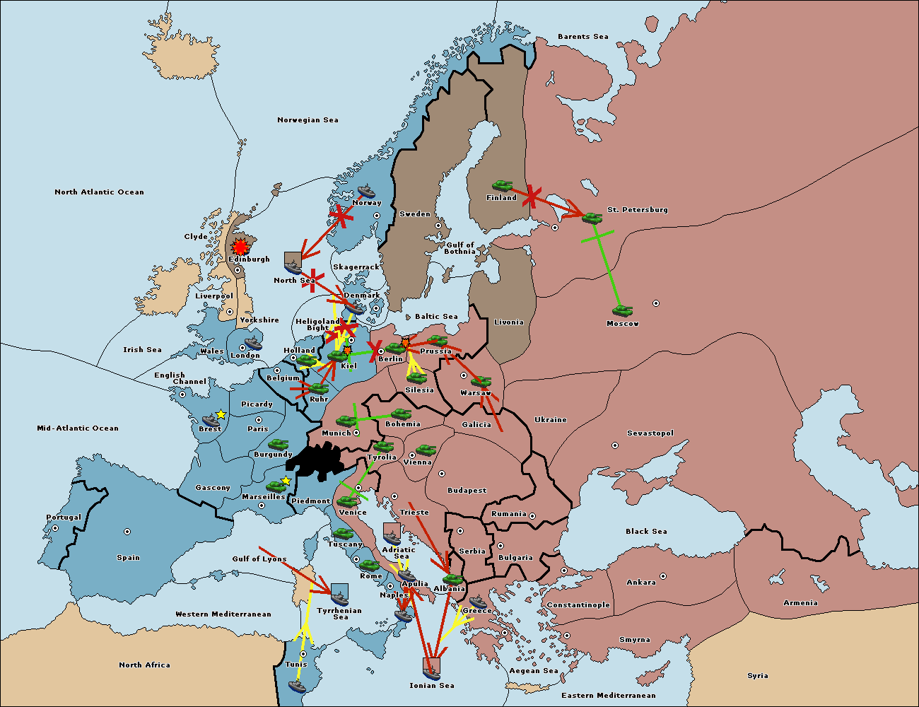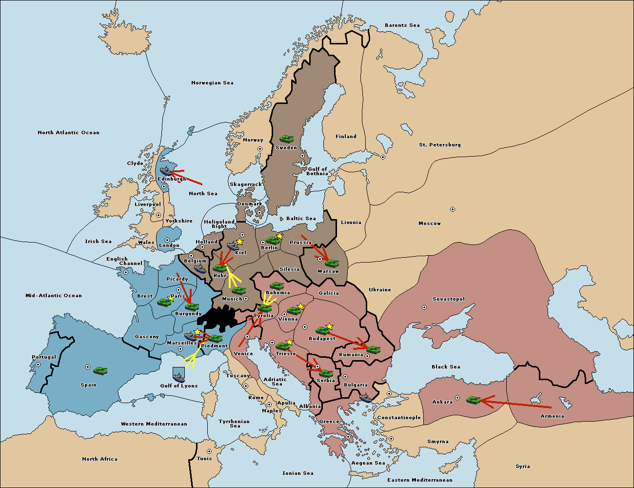 The fleet at Bulgaria (South Coast) move to Aegean Sea.