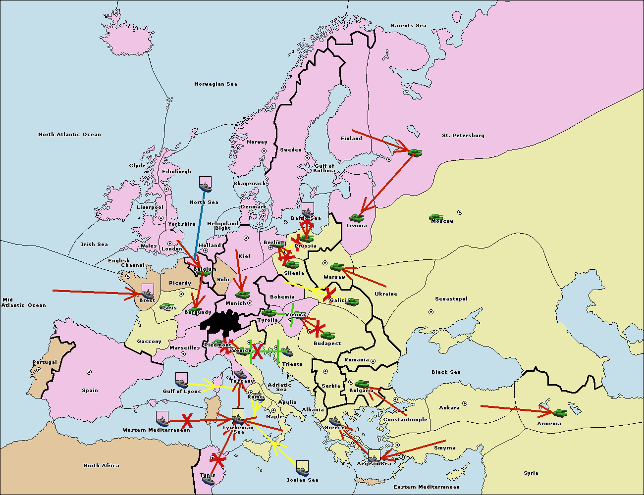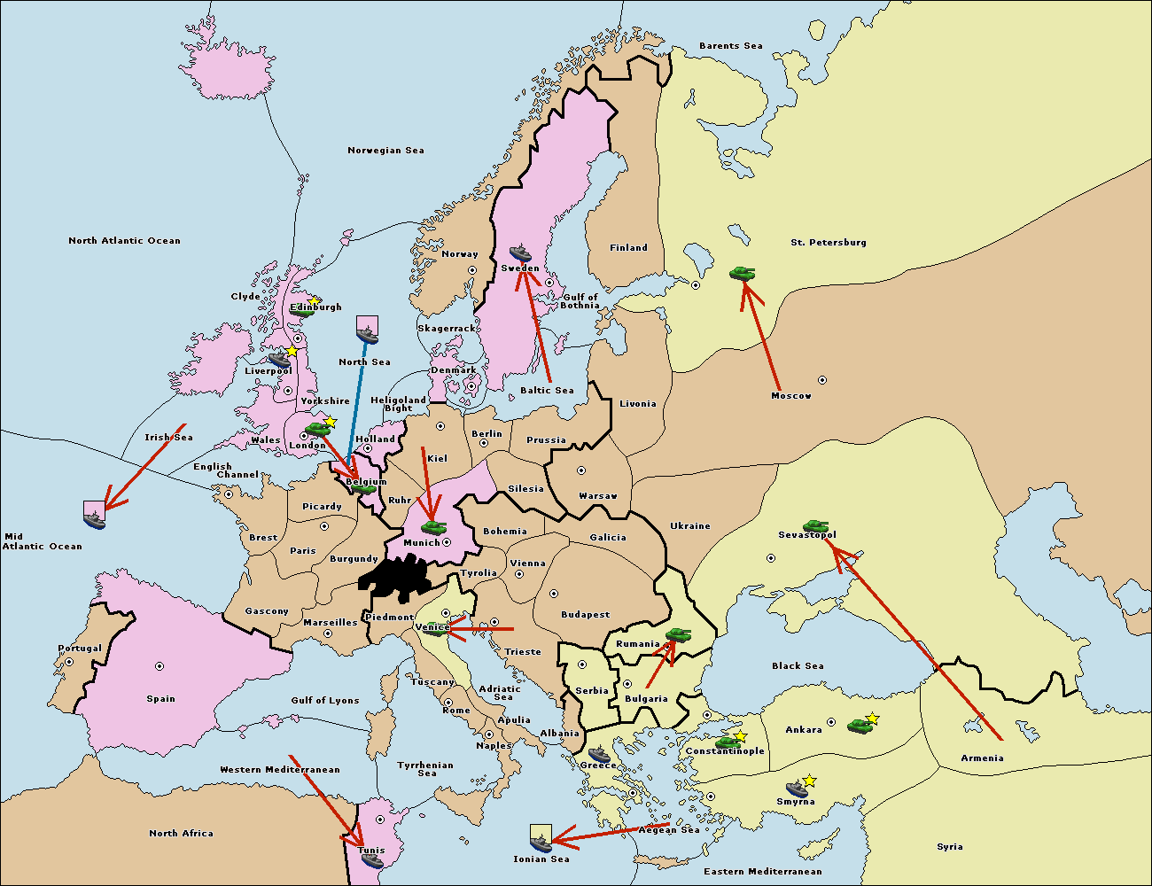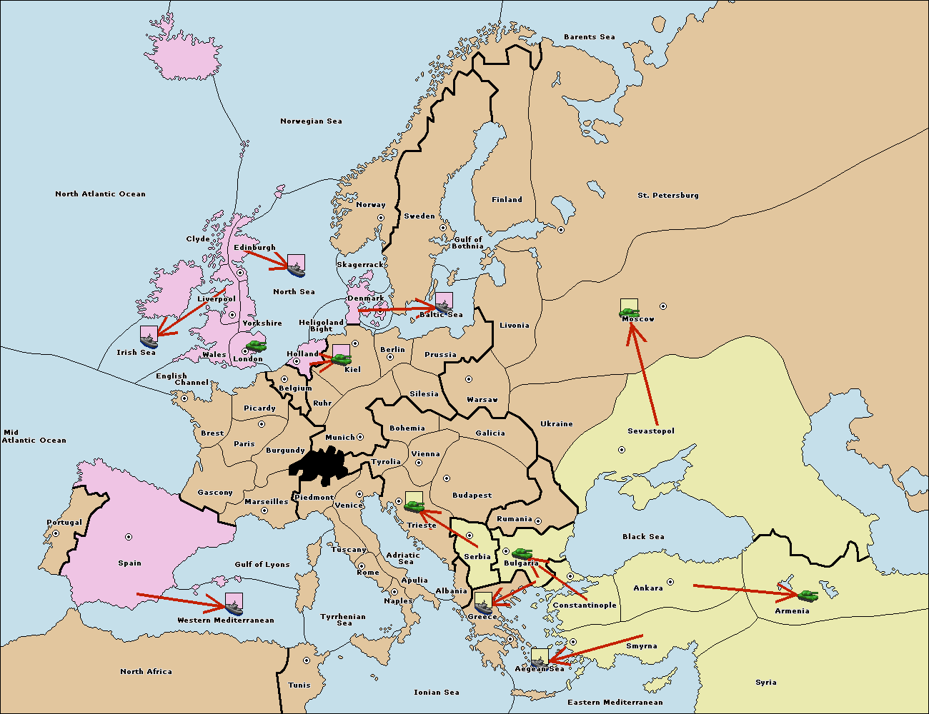 The fleet at Bulgaria (South Coast) move to Greece.