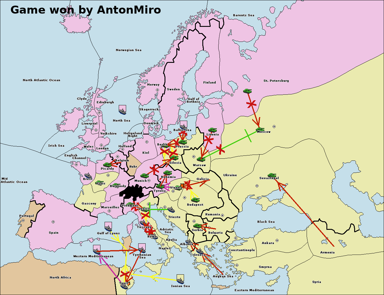 The fleet at Ionian Sea support move to Tunis from Tyrrhenian Sea.