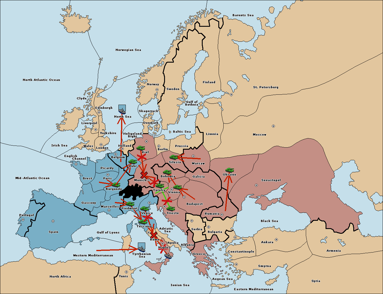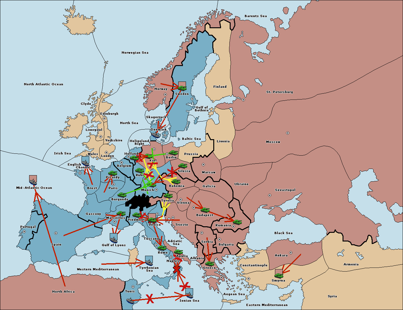The fleet at Ionian Sea support move to Tunis from Tyrrhenian Sea.