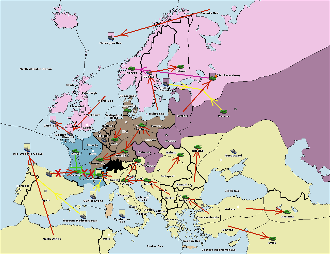 The fleet at Gulf of Lyons support hold to Marseilles.