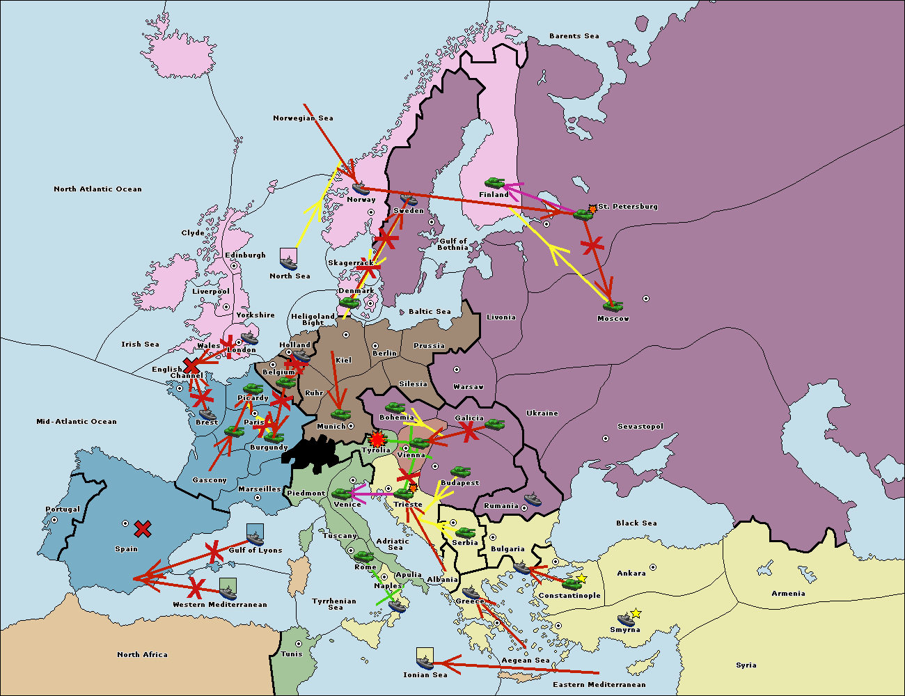 The fleet at Western Mediterranean move to Tyrrhenian Sea.