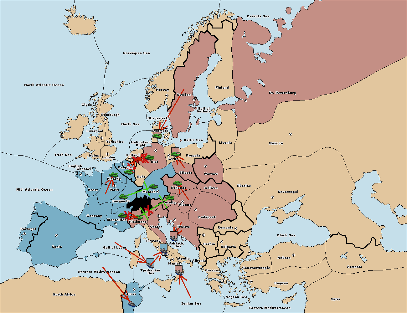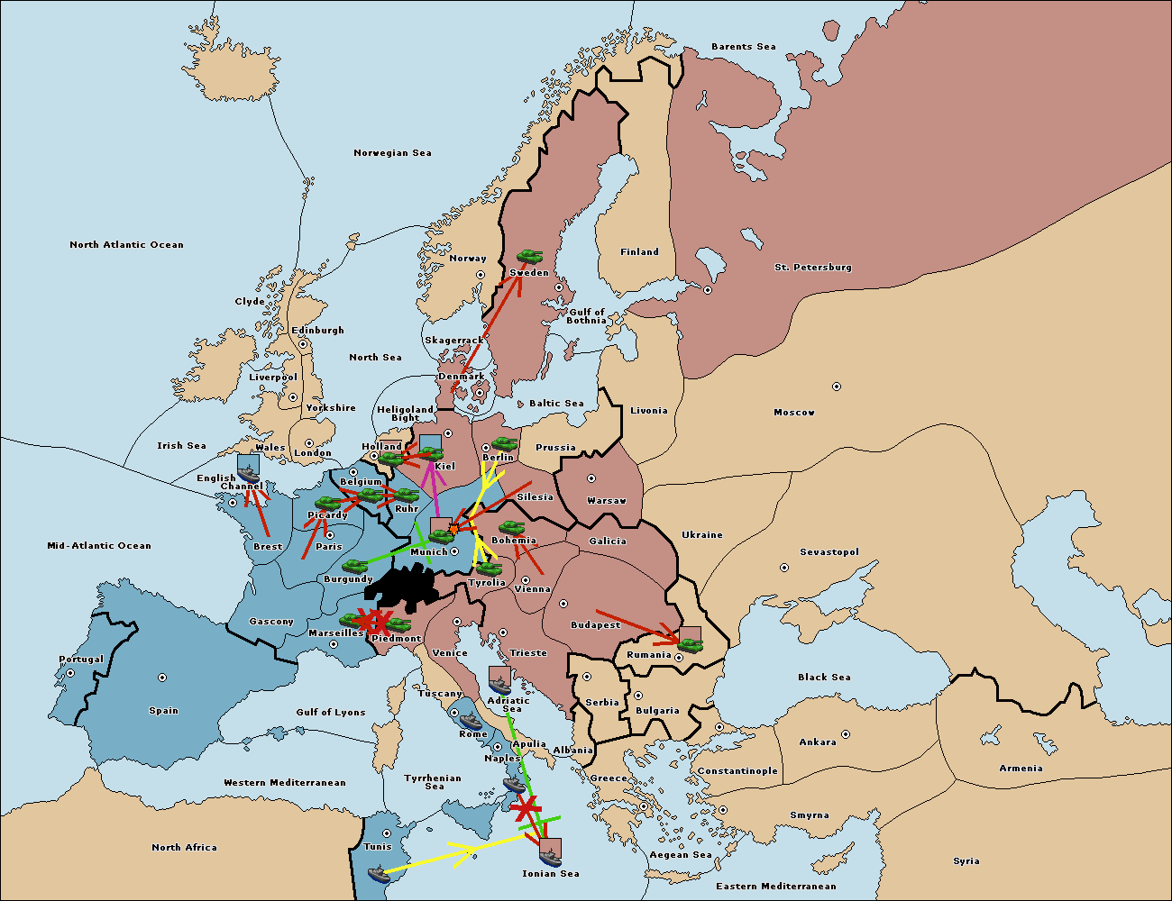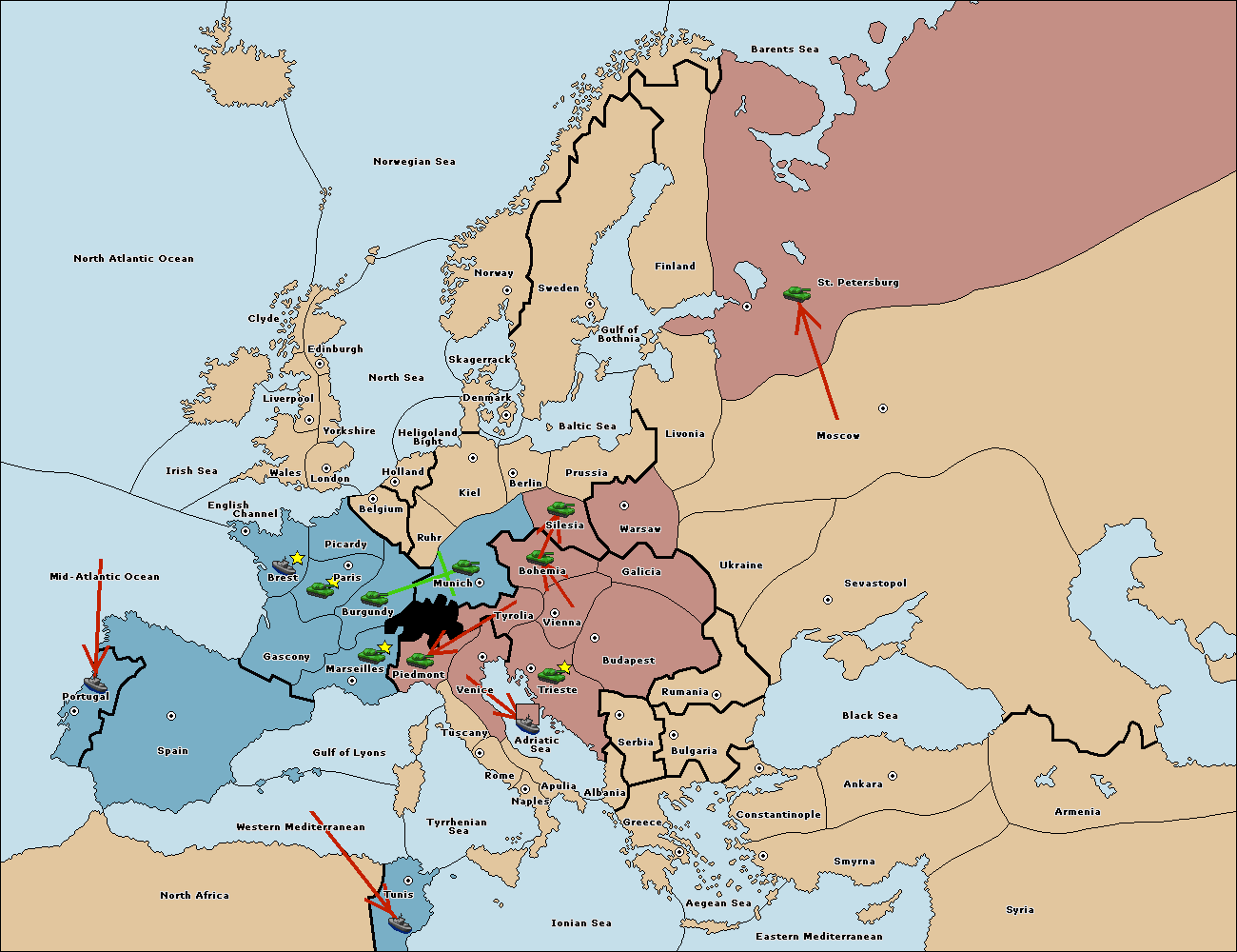 The fleet at Mid-Atlantic Ocean move to Western Mediterranean.