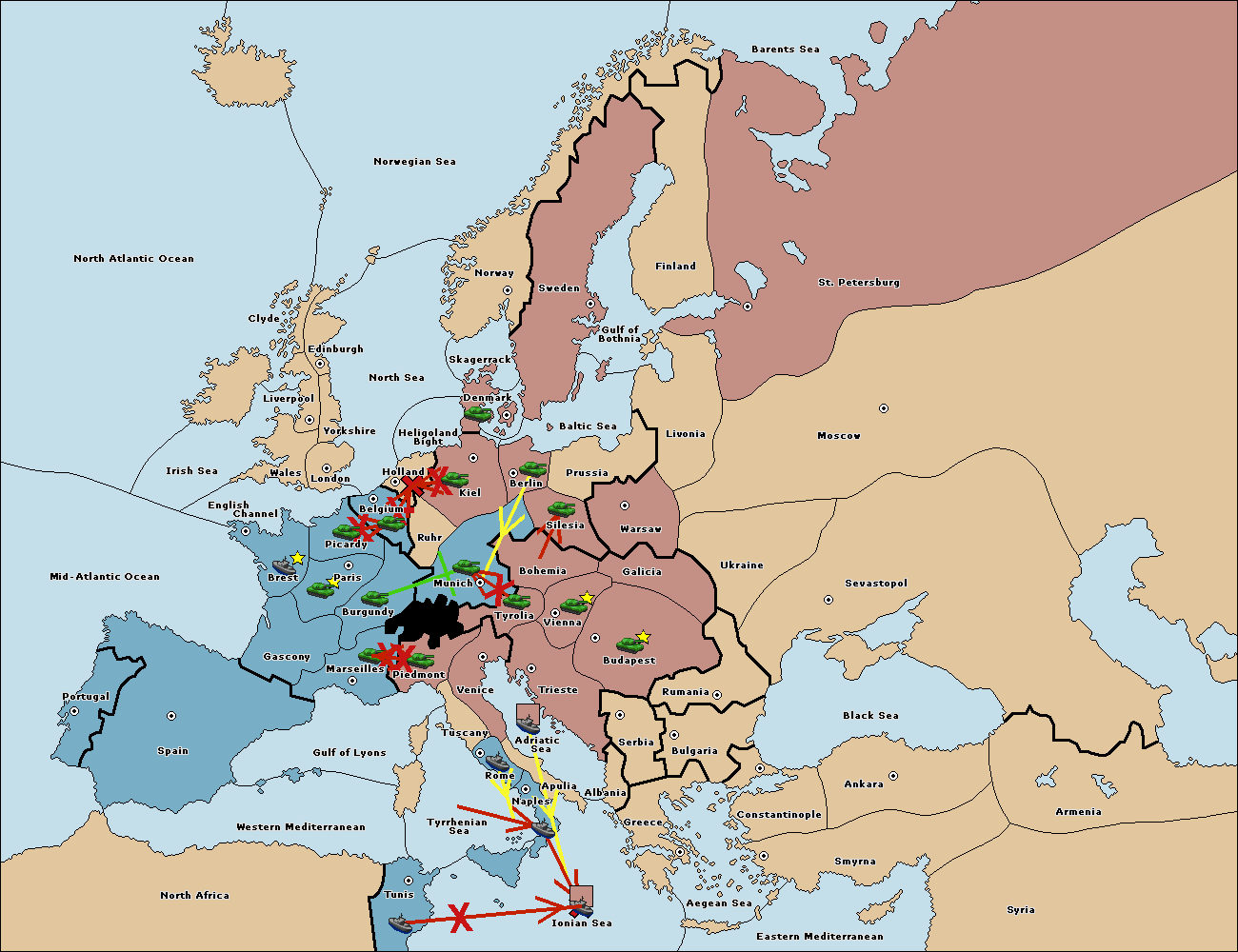 The fleet at Tunis support move to Ionian Sea from Naples.