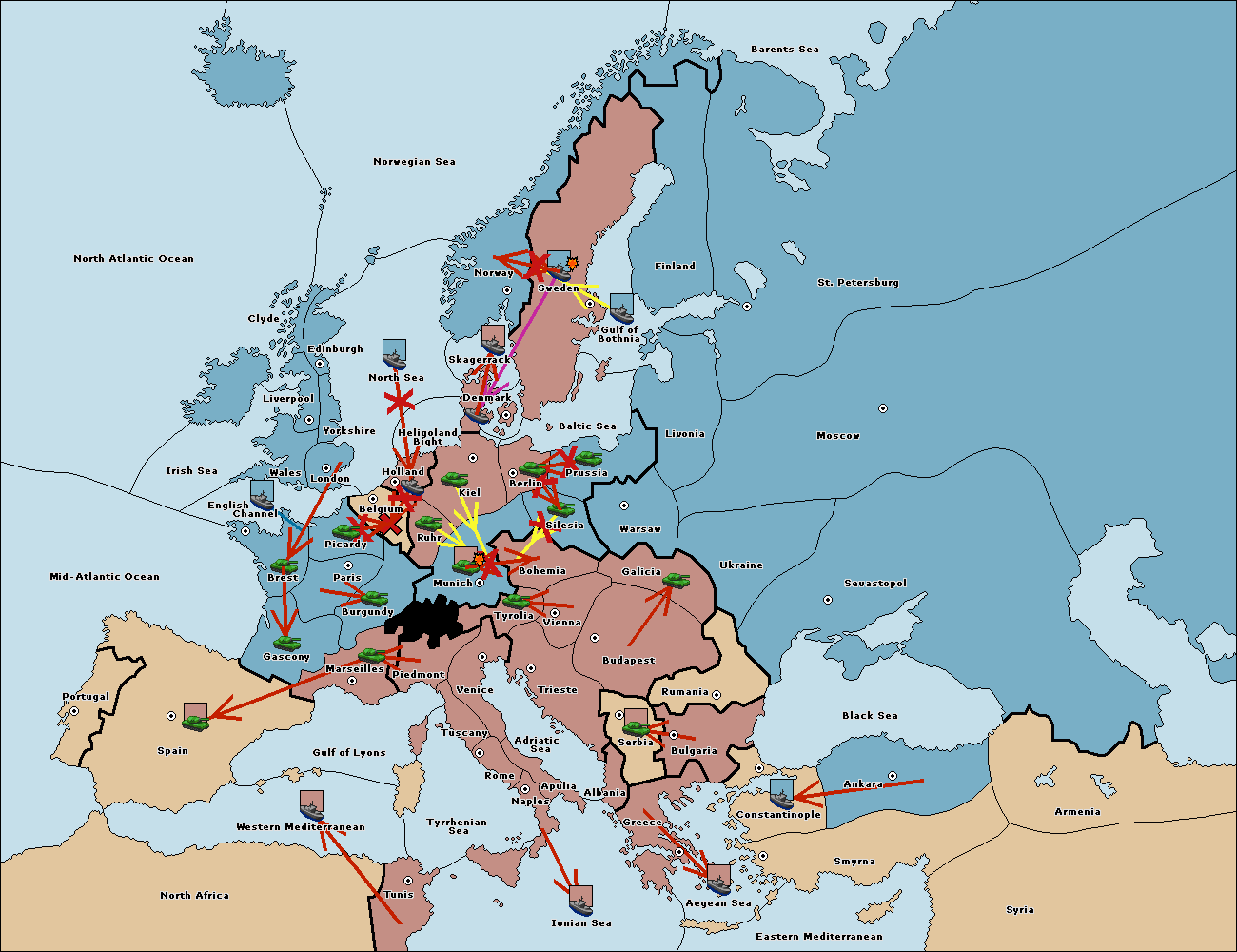 The fleet at St. Petersburg (South Coast) move to Gulf of Bothnia.