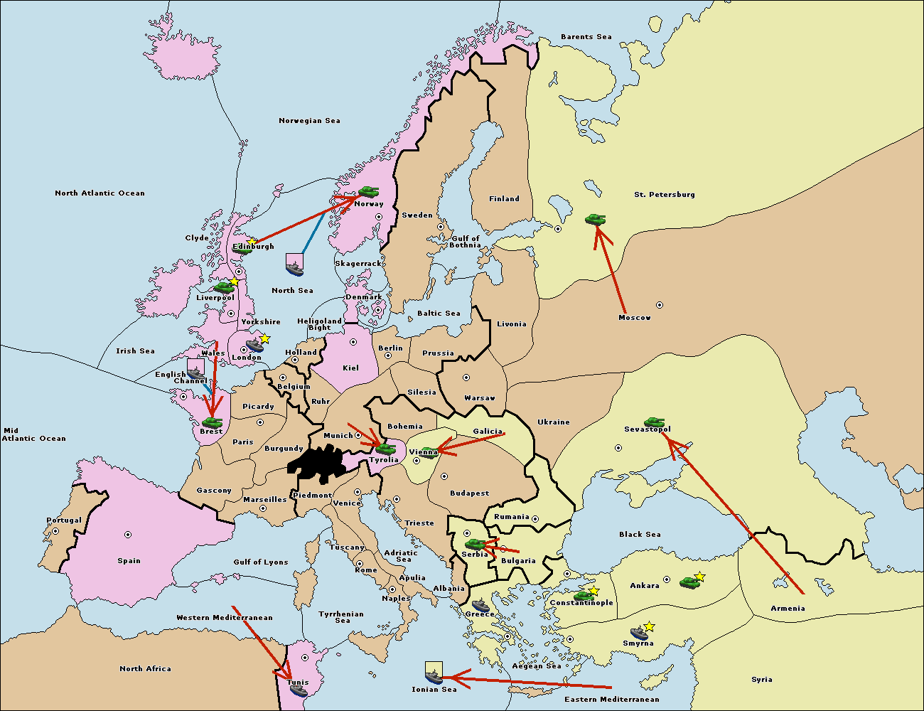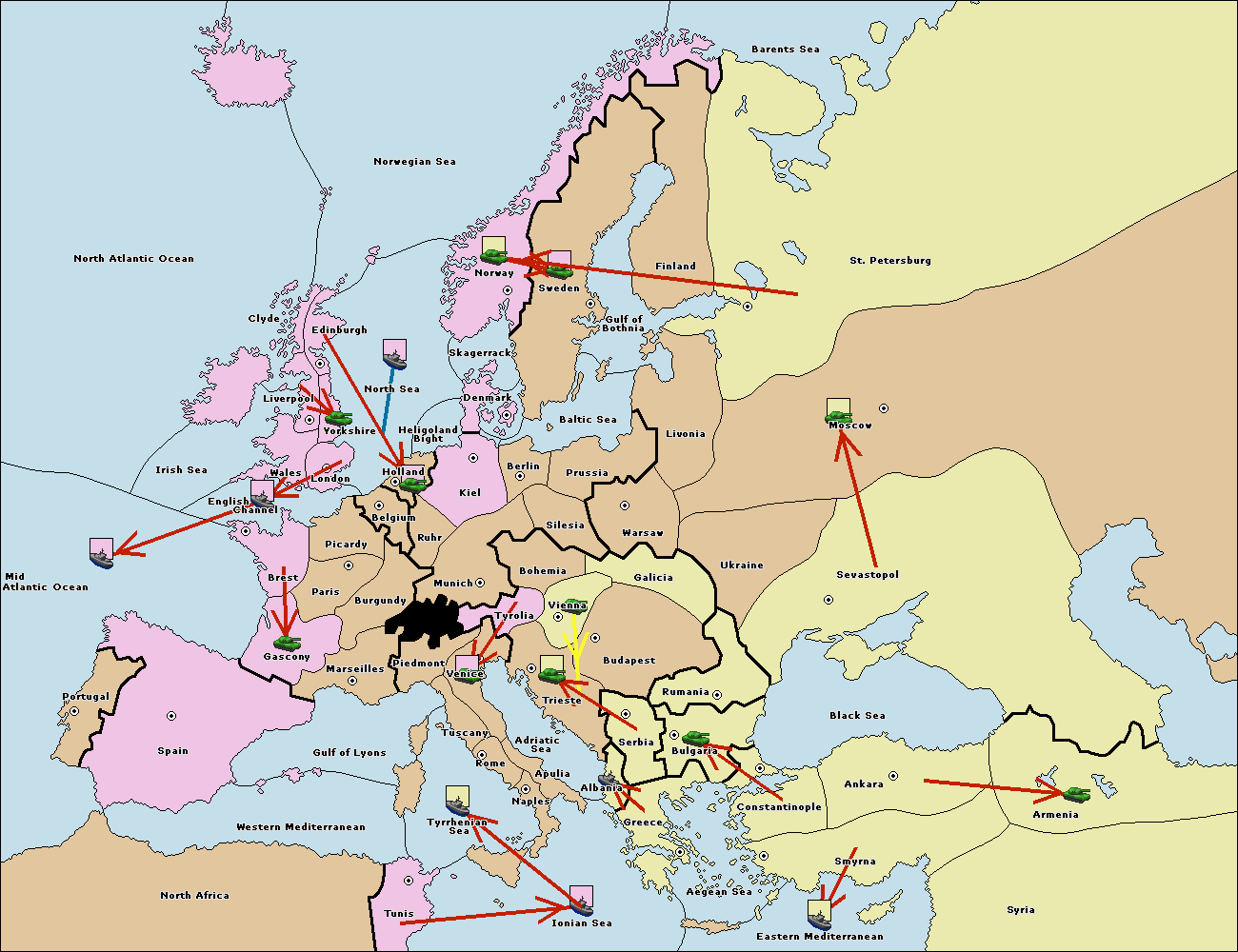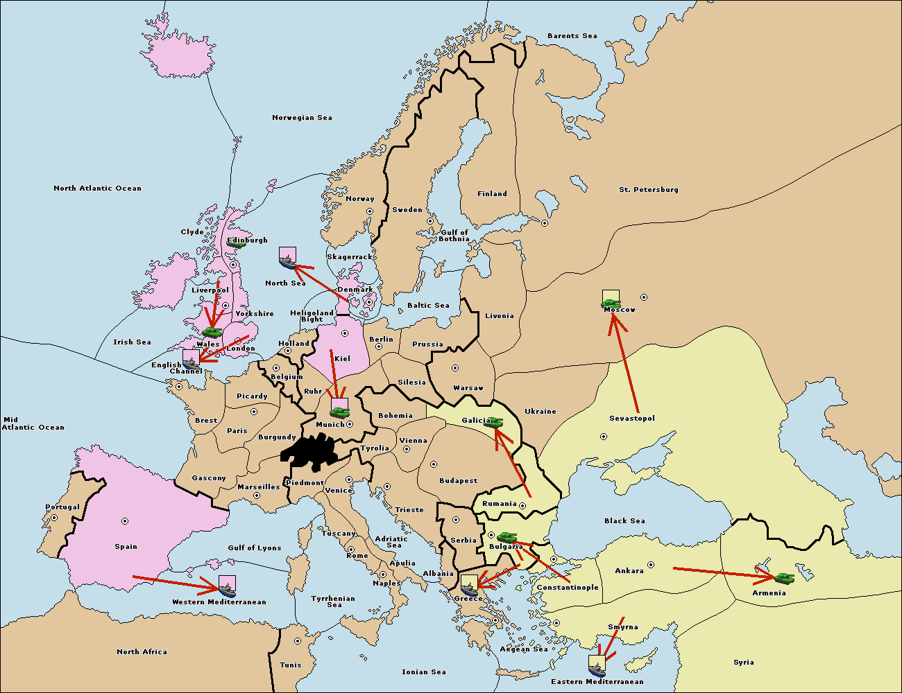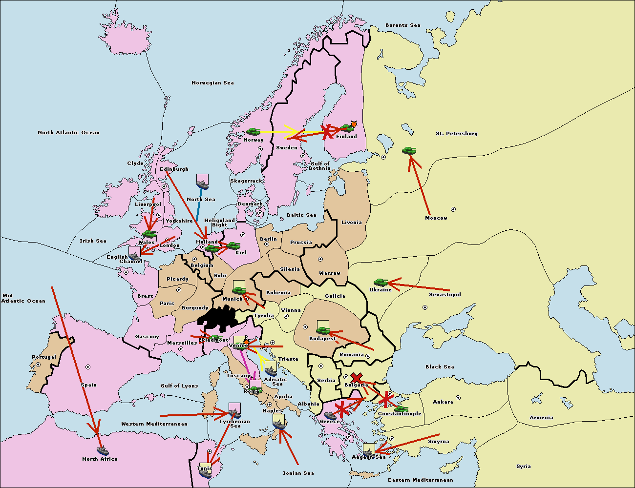 The fleet at Bulgaria (South Coast) move to Greece.
