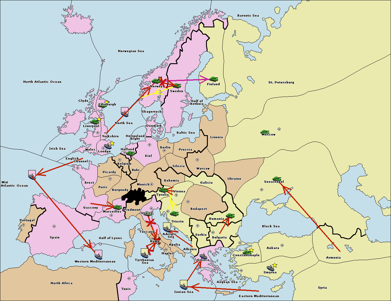 The fleet at Mid-Atlantic Ocean move to Western Mediterranean.