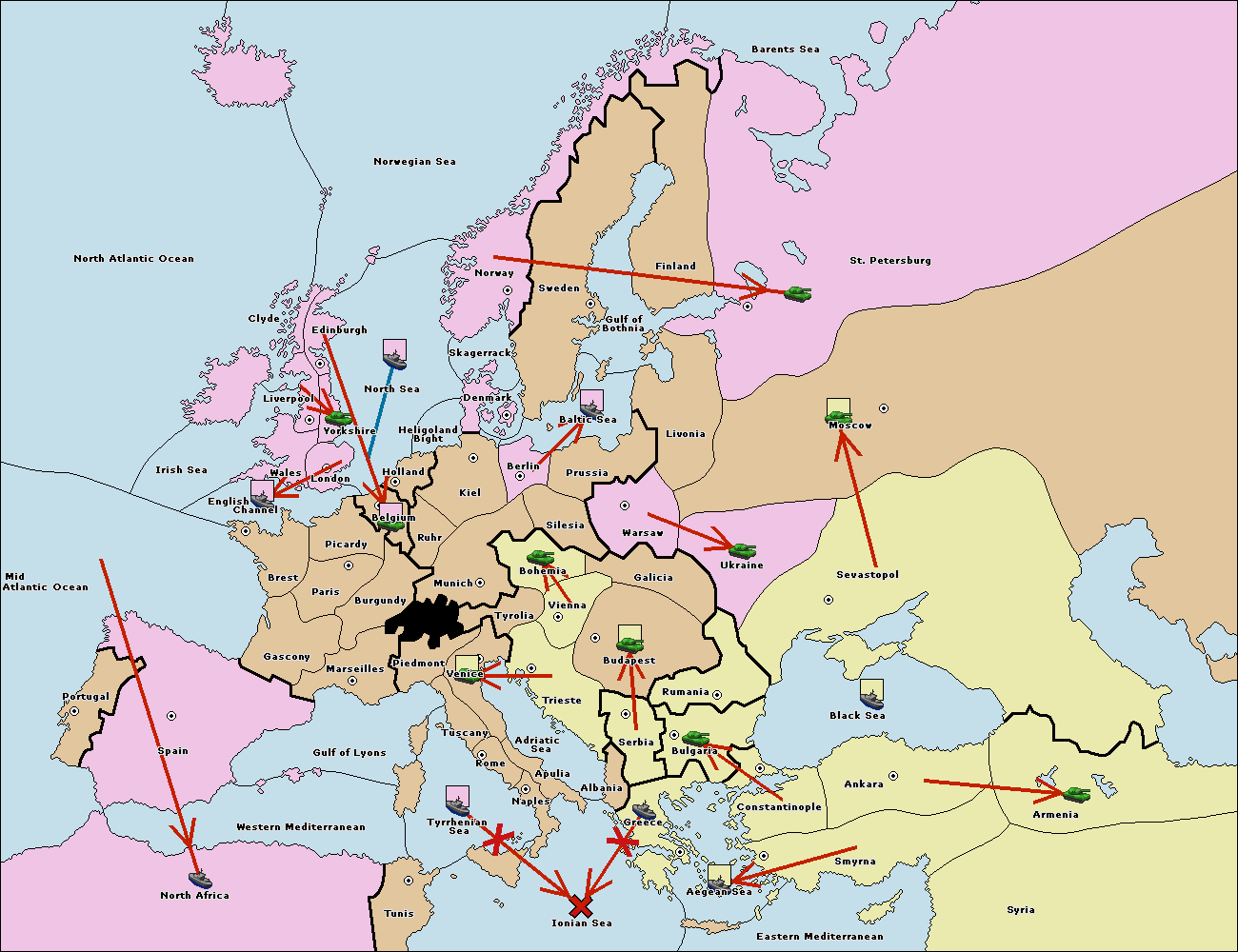 The fleet at Aegean Sea support hold to Ionian Sea.