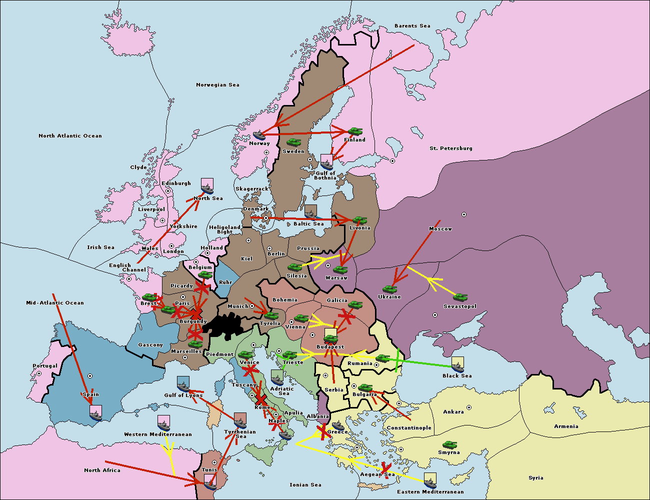 The fleet at Tyrrhenian Sea support hold to Tunis.