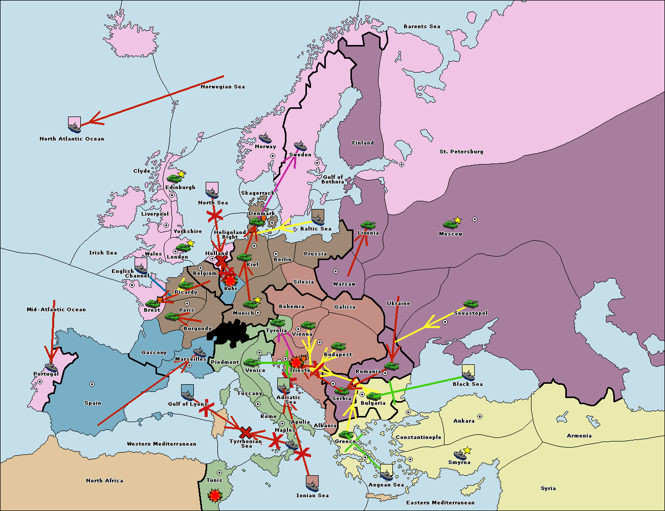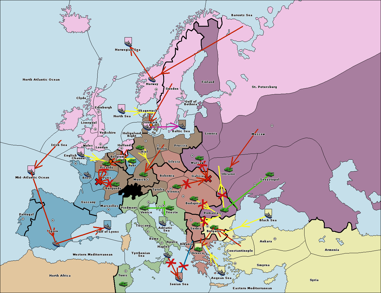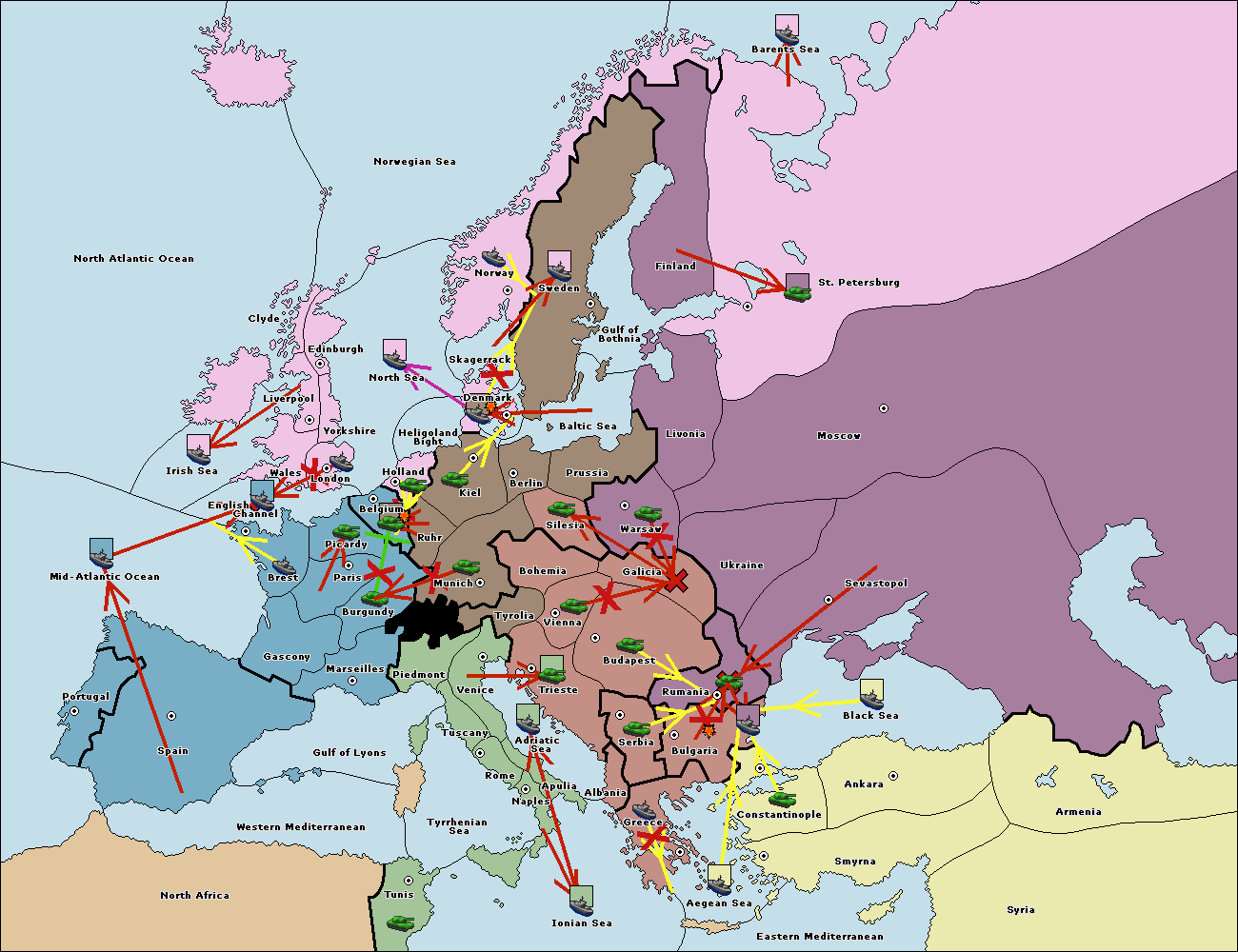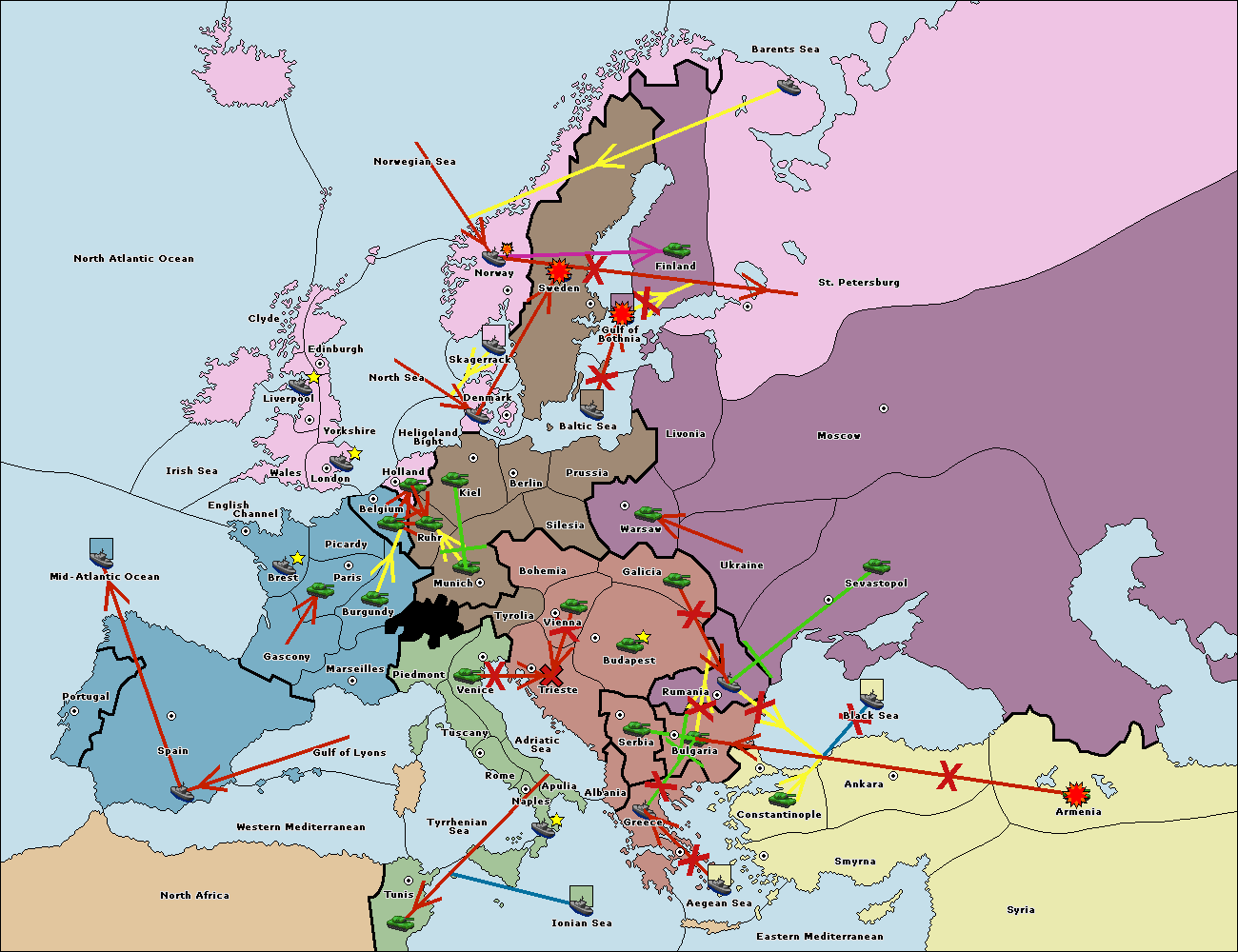 The fleet at Rumania support move to Bulgaria from Armenia.