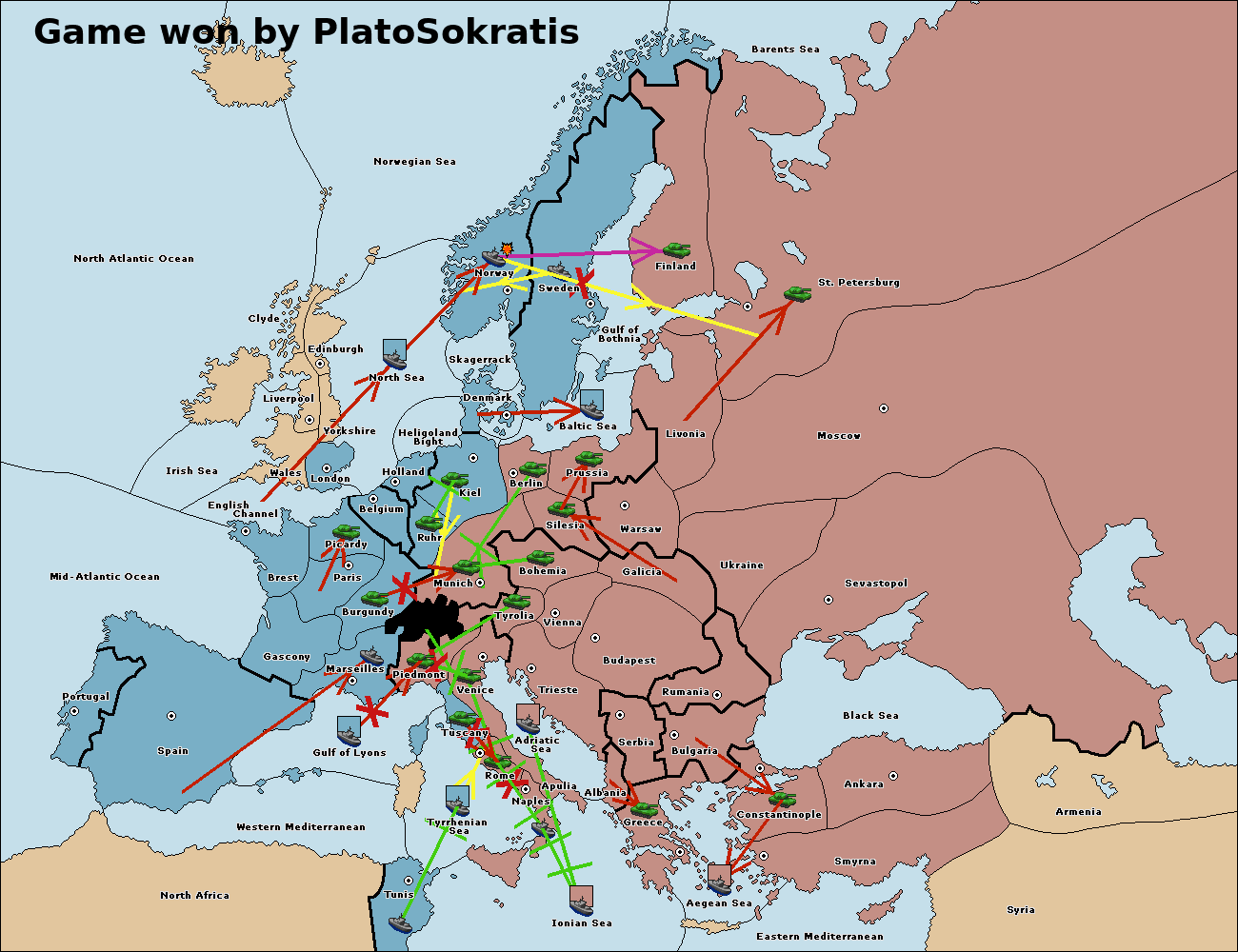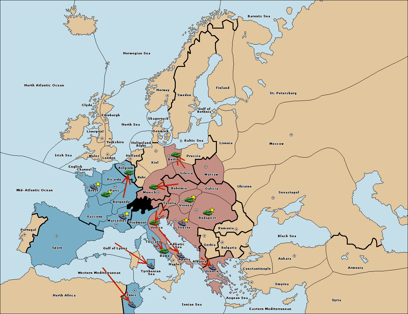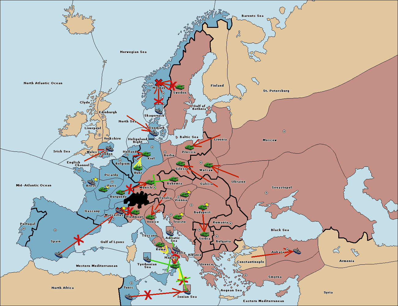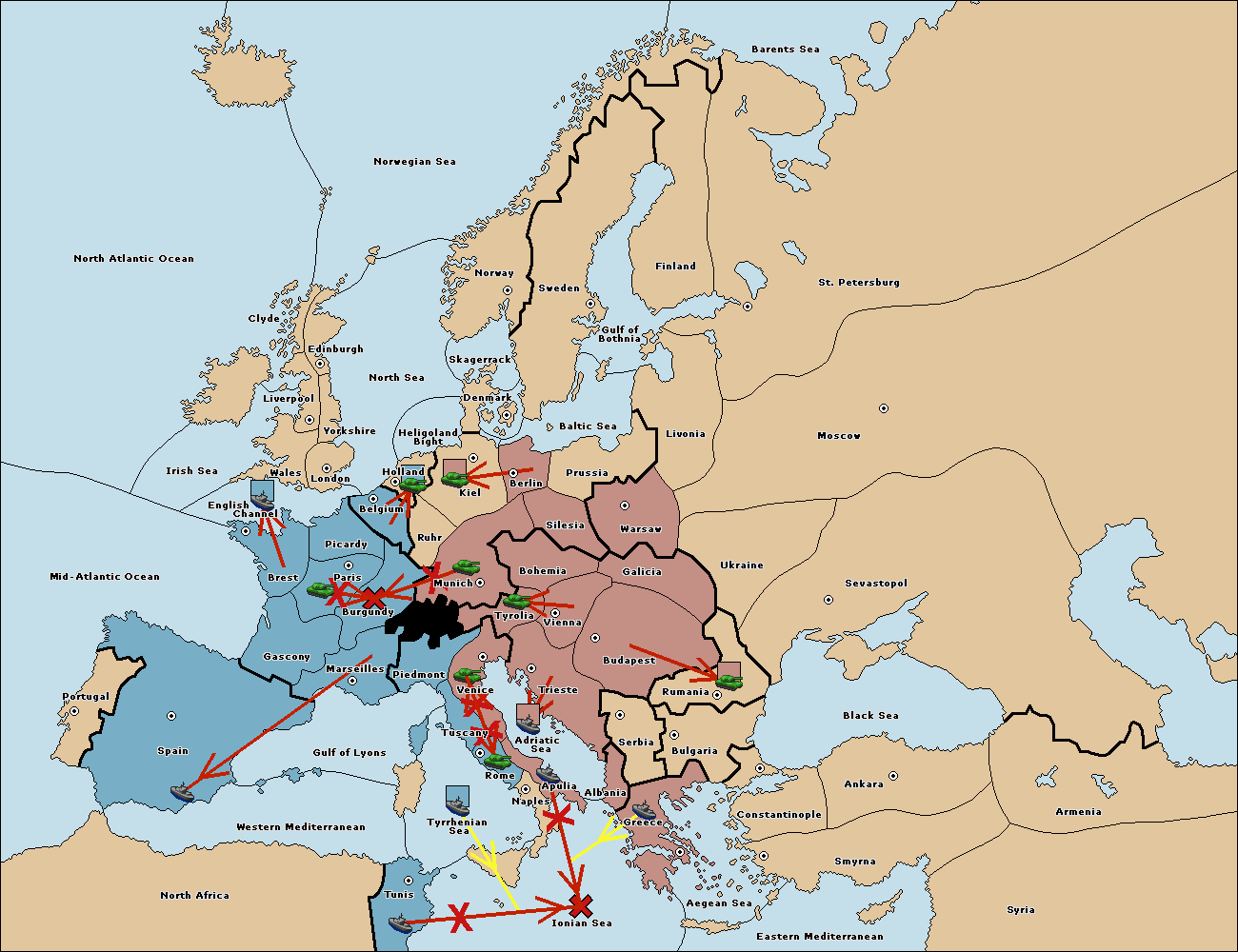 The fleet at Bulgaria (South Coast) move to Constantinople.
