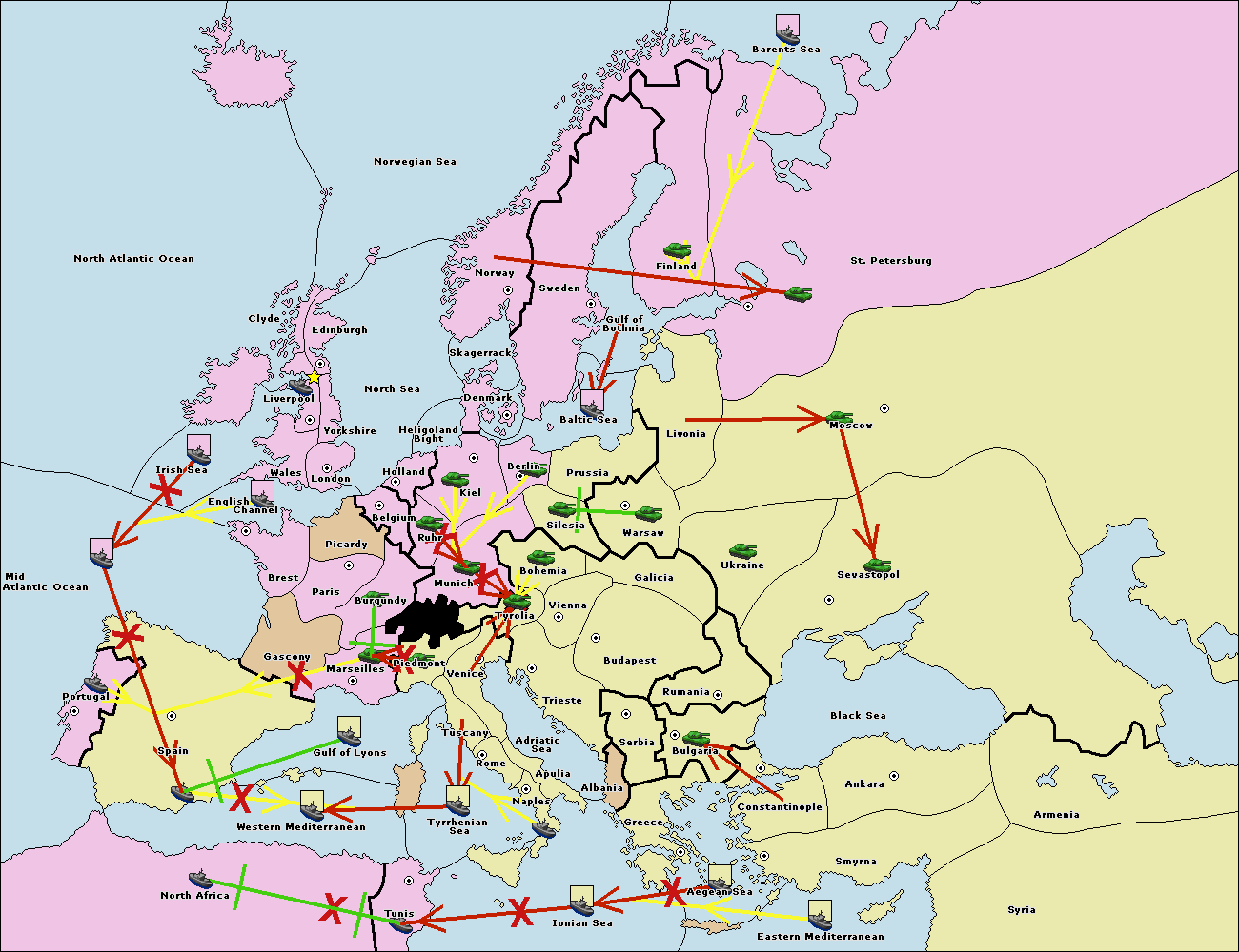 The fleet at Mid-Atlantic Ocean move to Western Mediterranean.