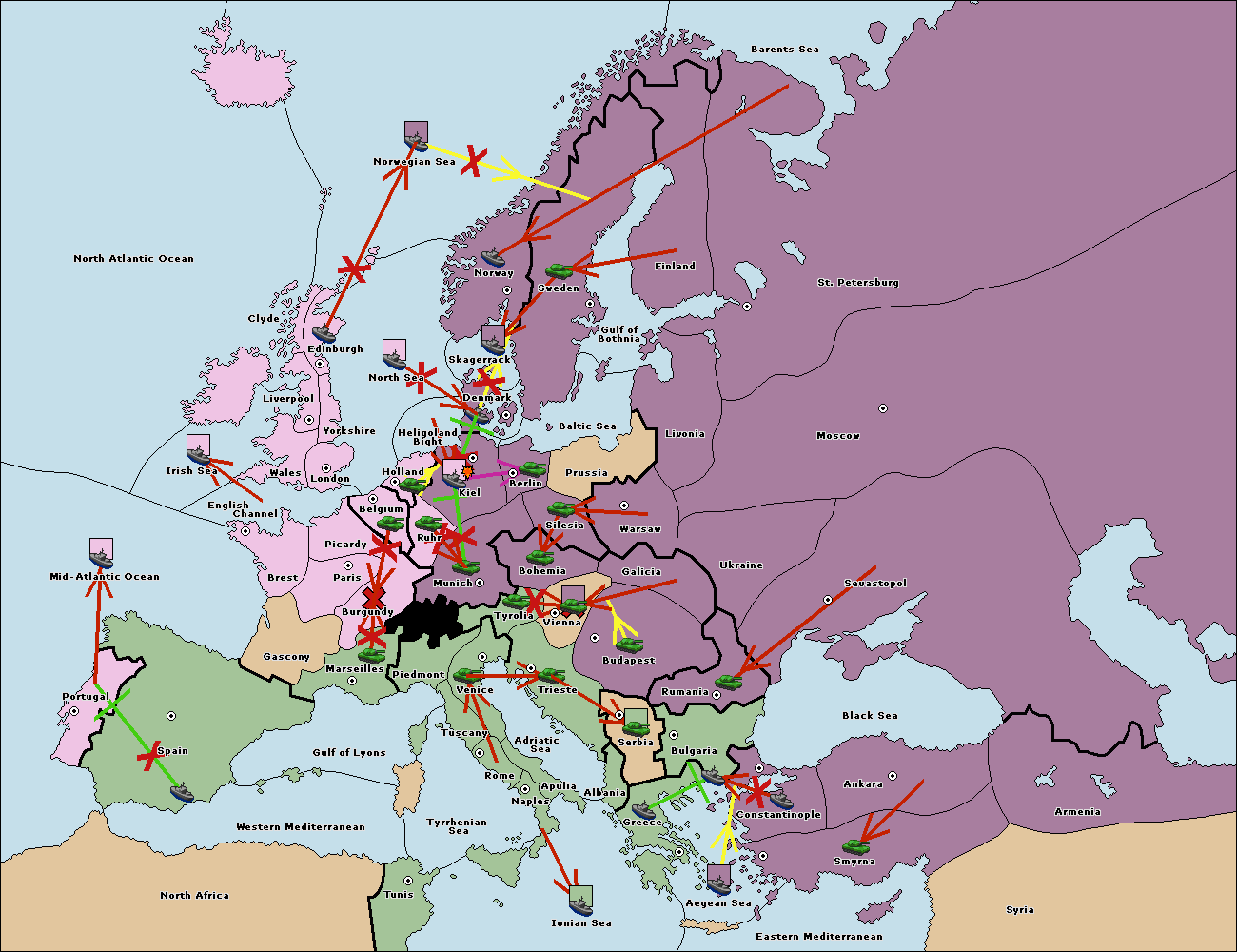 The fleet at Bulgaria (South Coast) move to Aegean Sea.
