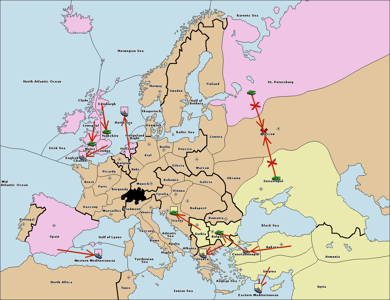 The fleet at Mid-Atlantic Ocean move to Western Mediterranean.