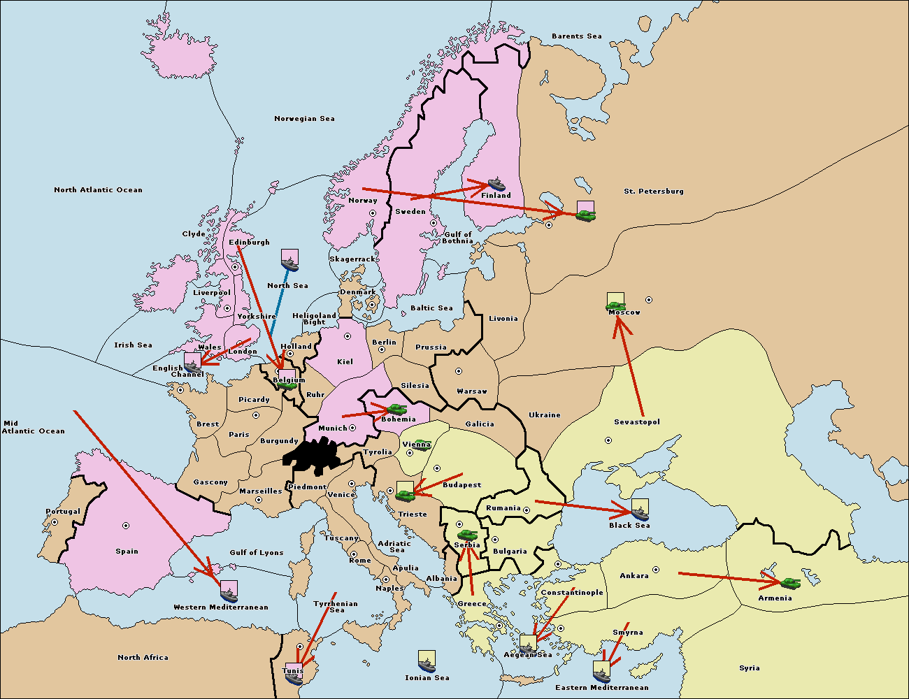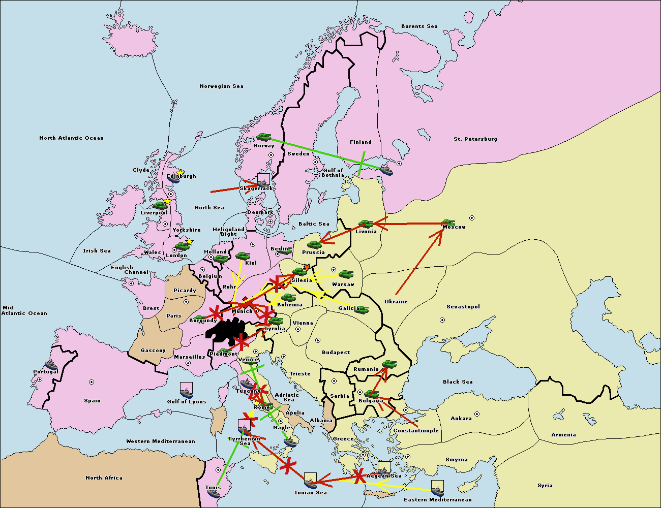 The fleet at Mid-Atlantic Ocean move to Western Mediterranean.