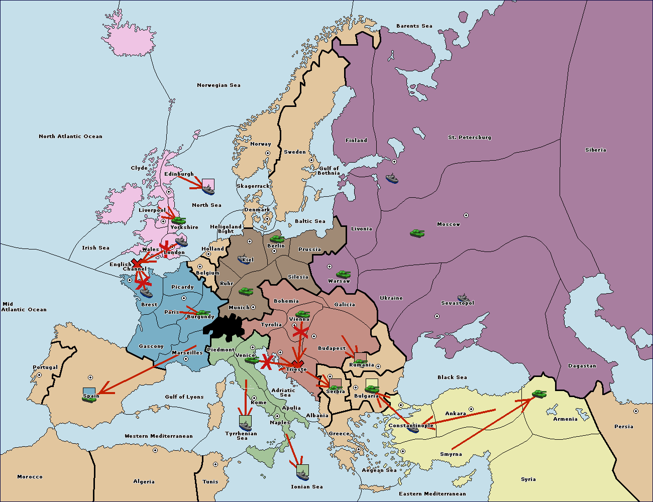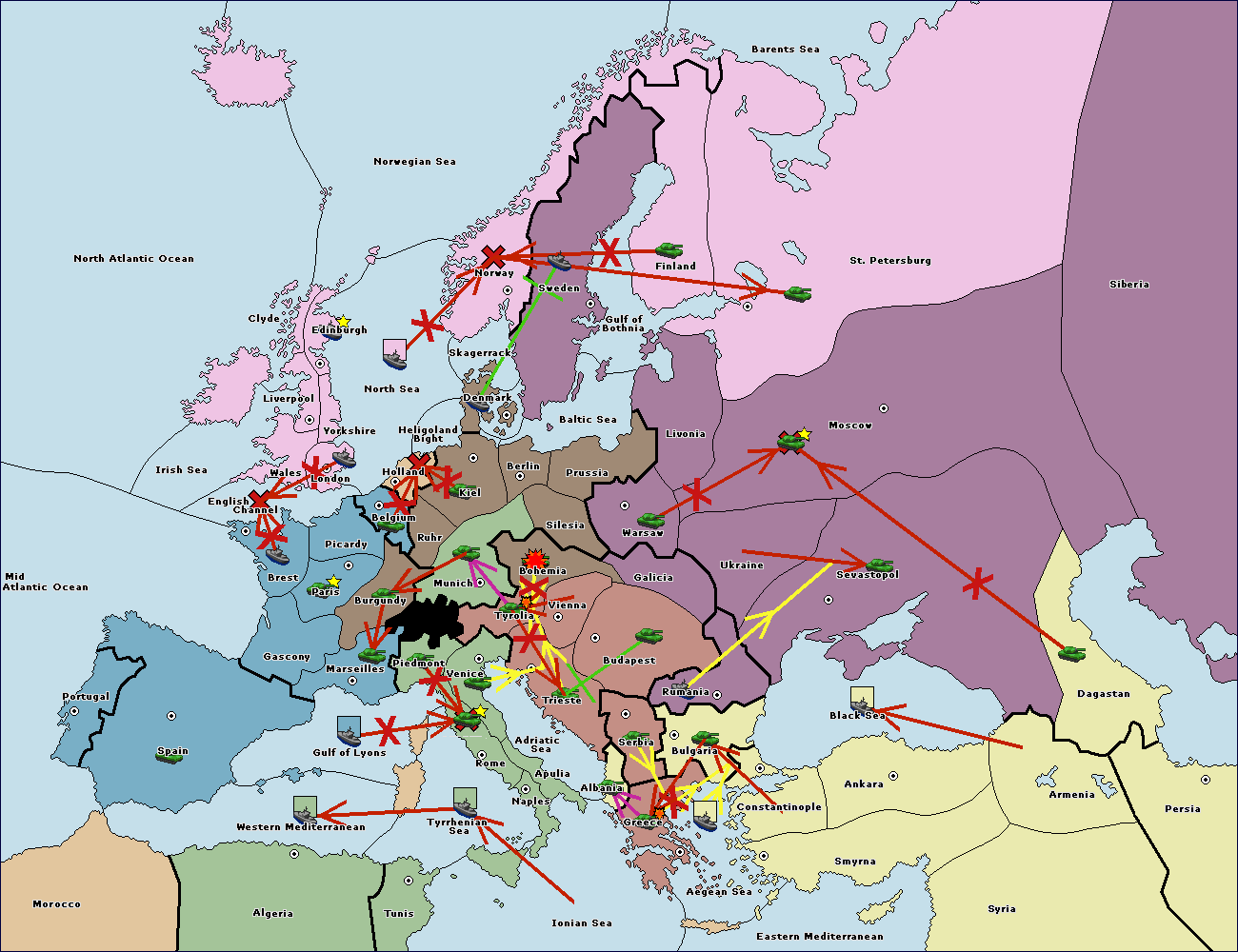 The fleet at Tyrrhenian Sea move to Gulf of Lyons.