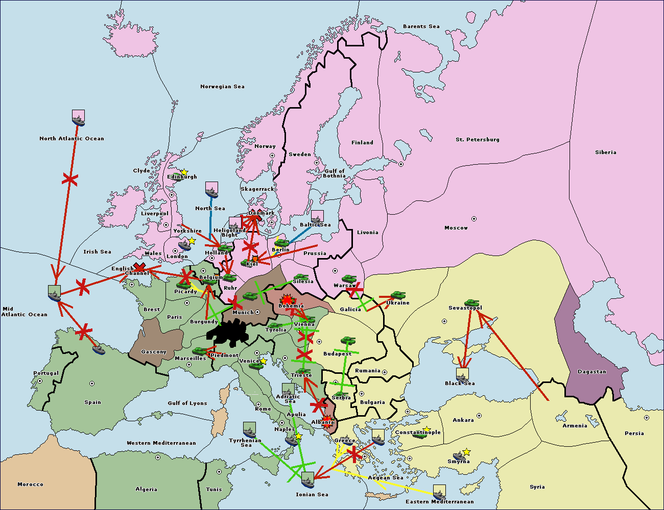 The fleet at Ionian Sea support hold to Eastern Mediterranean.