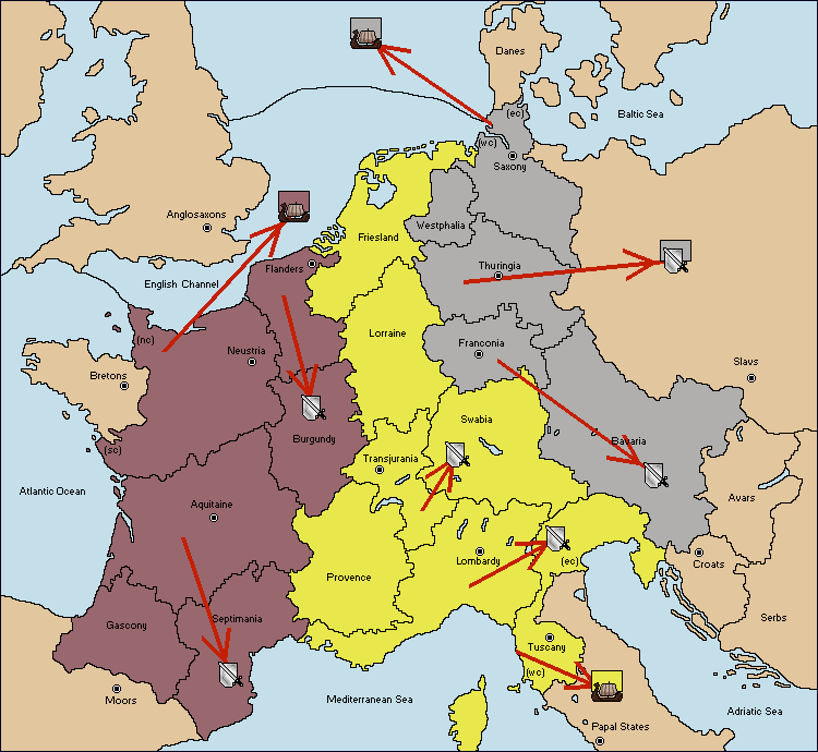 The army at Septimania move to Lombardy.