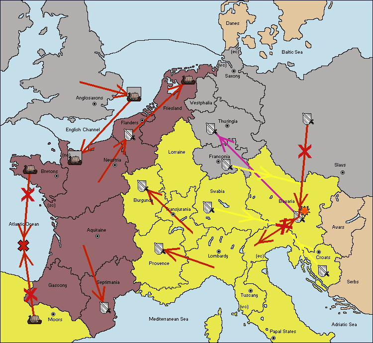The army at Neustria support move to Bretons from Atlantic Ocean.