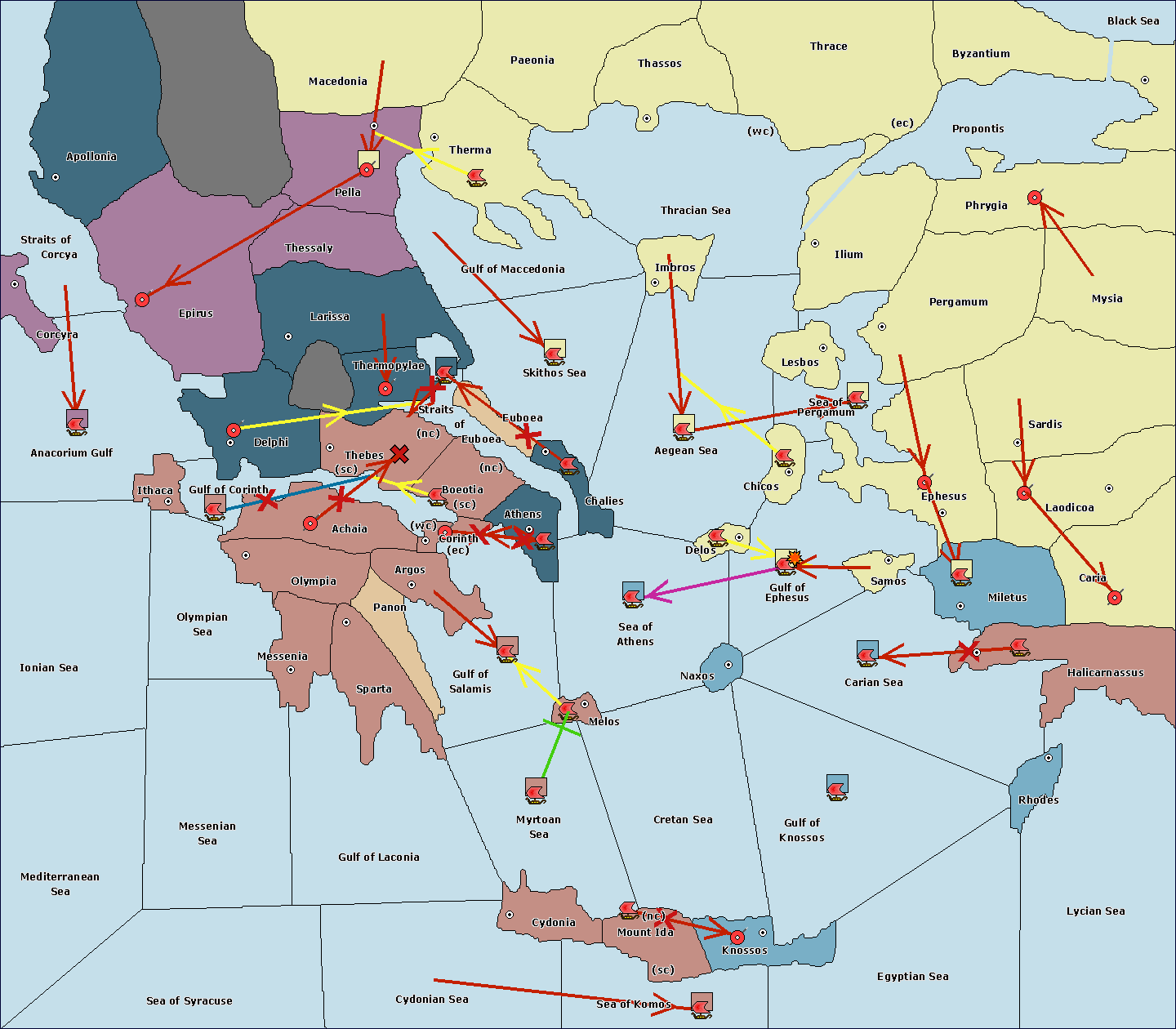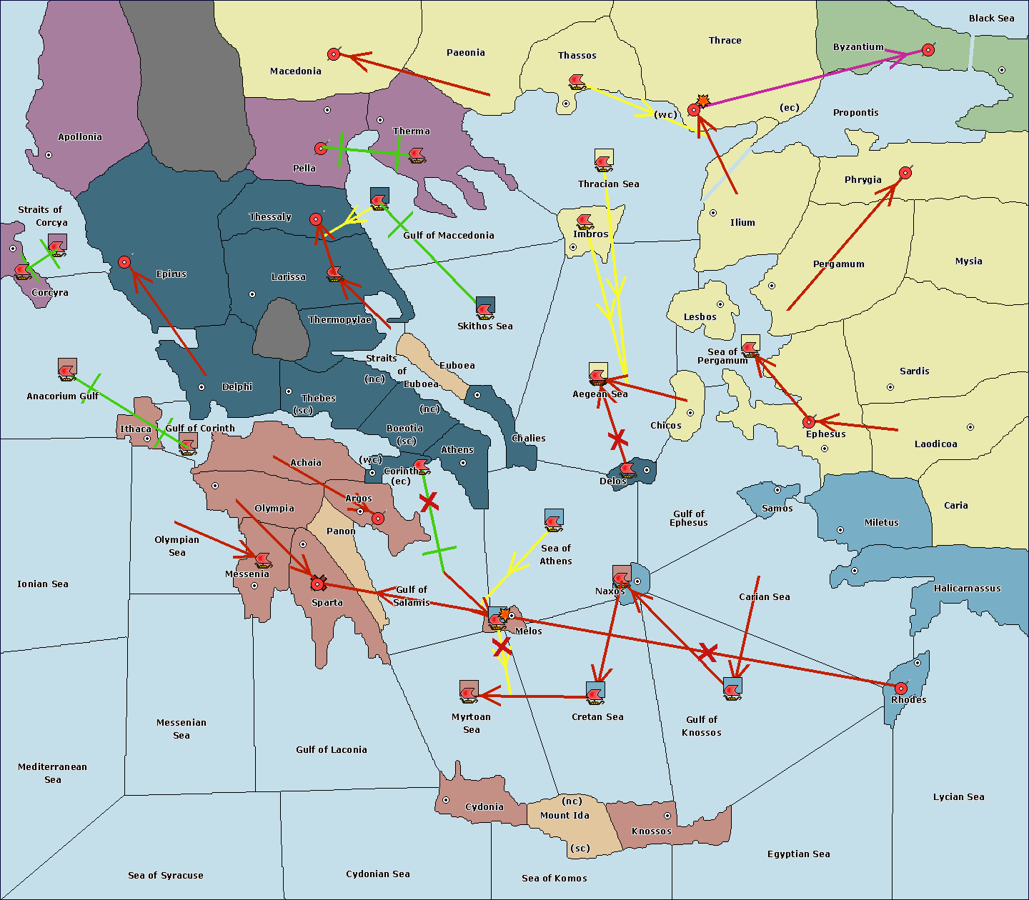 The fleet at Gulf of Ephesus support move to Aegaean Sea from Sea of Athens.