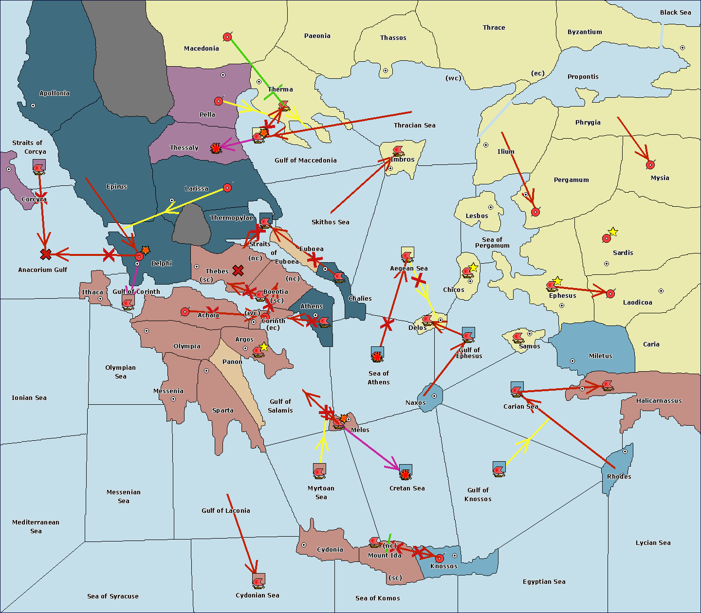 The fleet at Gulf of Ephesus support move to Naxos from Sea of Athens.