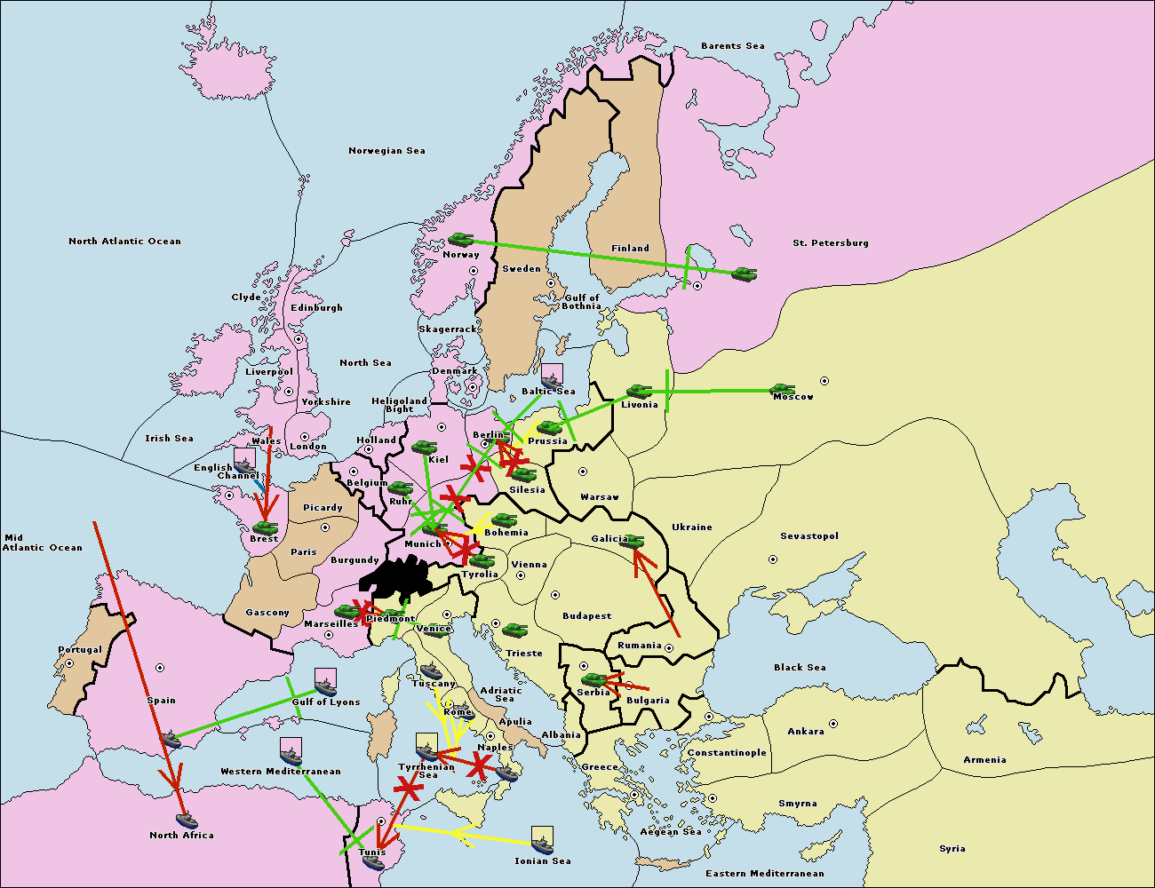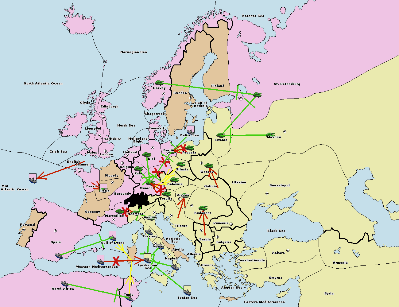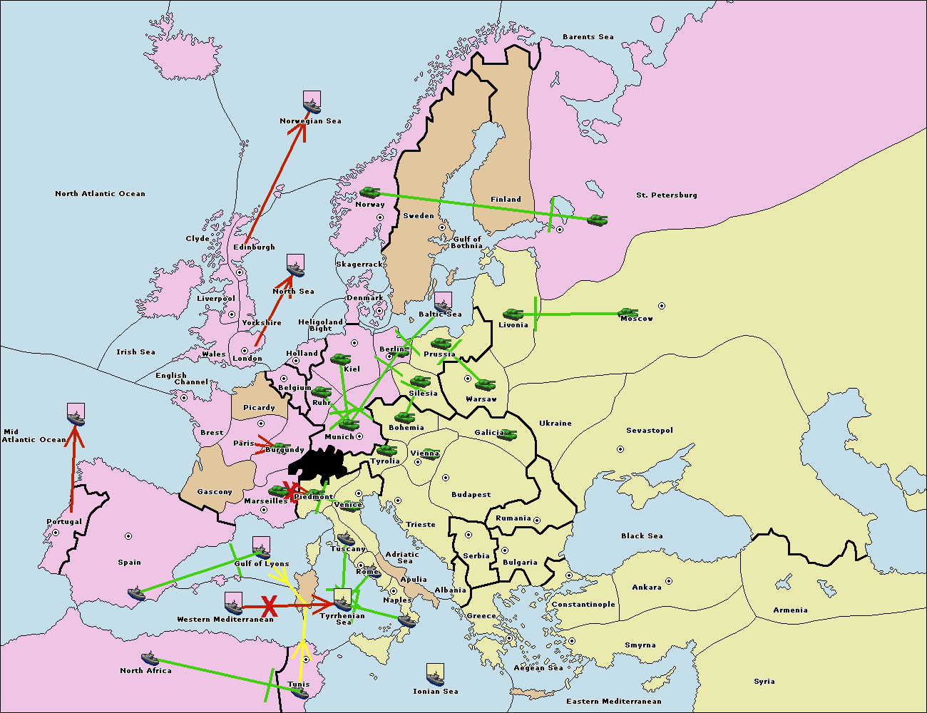 The fleet at Mid-Atlantic Ocean move to Western Mediterranean.