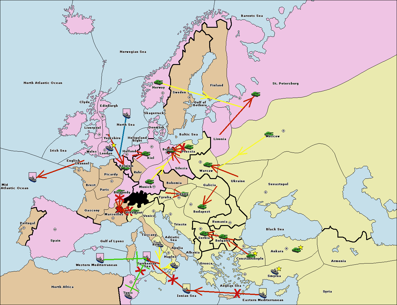 The fleet at Spain (South Coast) support move to Marseilles from Burgundy.