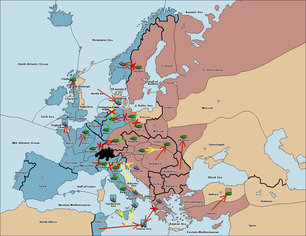 The fleet at Naples support move to Ionian Sea from Tunis.
