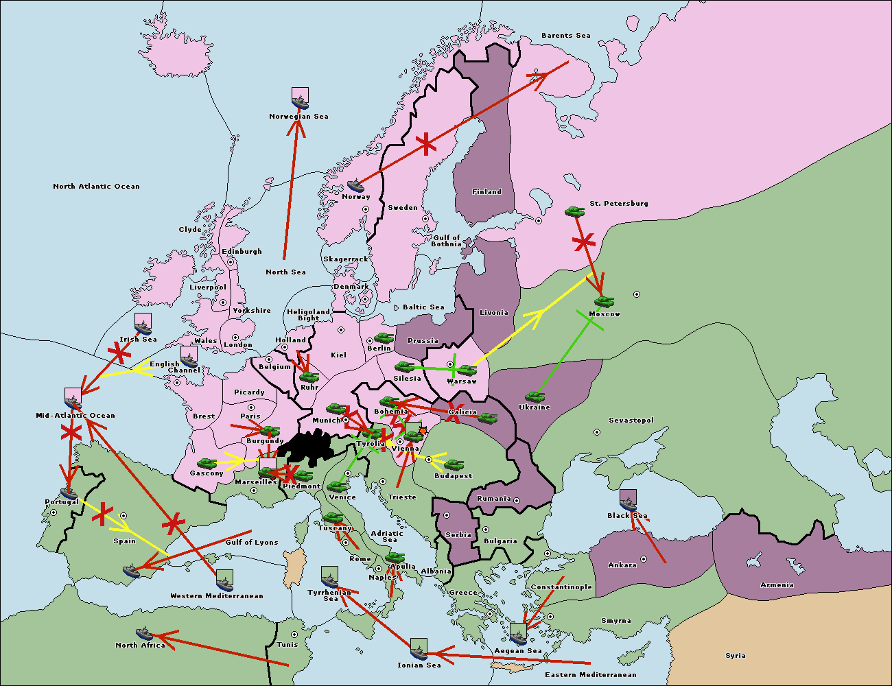The fleet at North Africa move to Mid-Atlantic Ocean.