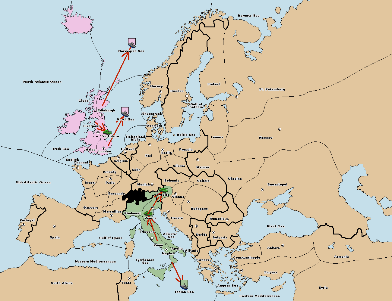 The fleet at St. Petersburg (South Coast) move to Livonia.