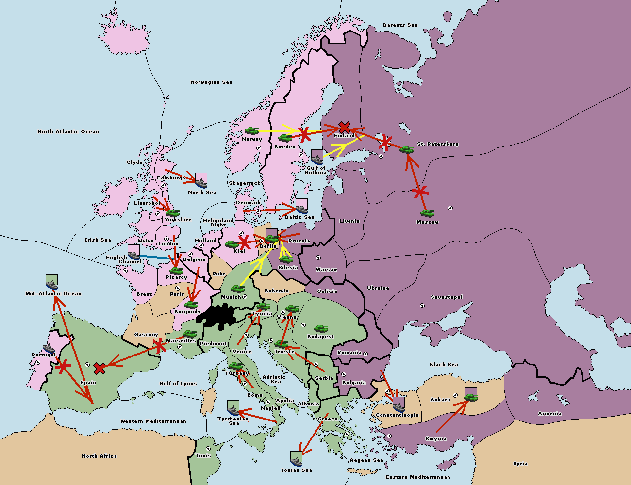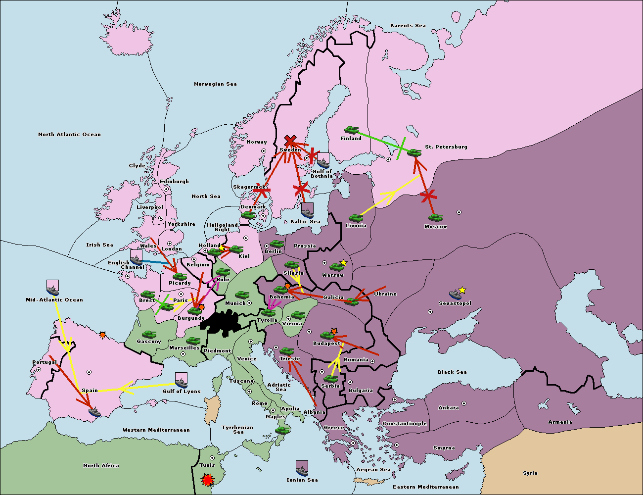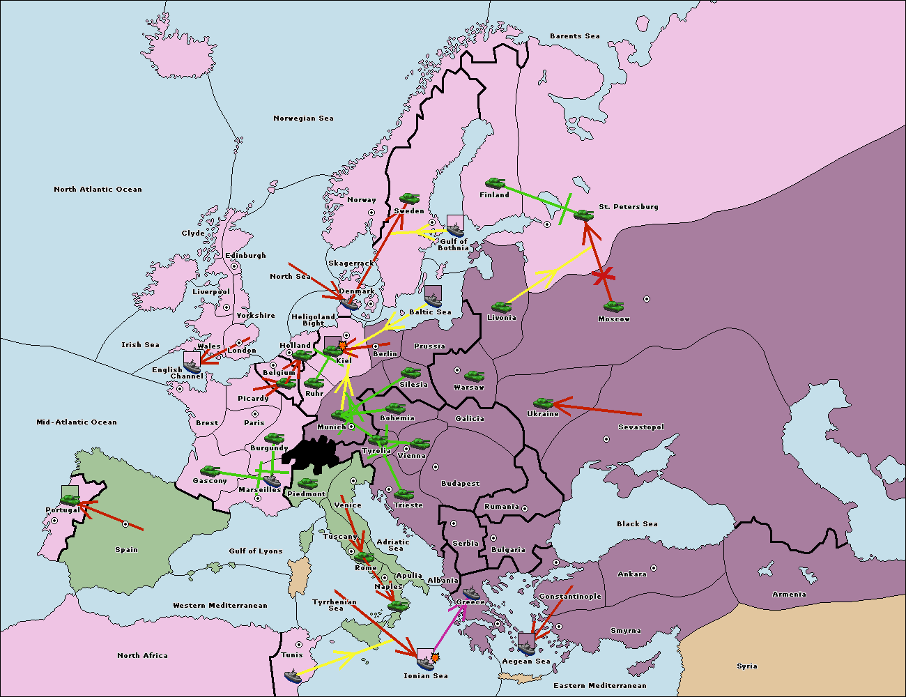 The fleet at Bulgaria (North Coast) move to Constantinople.