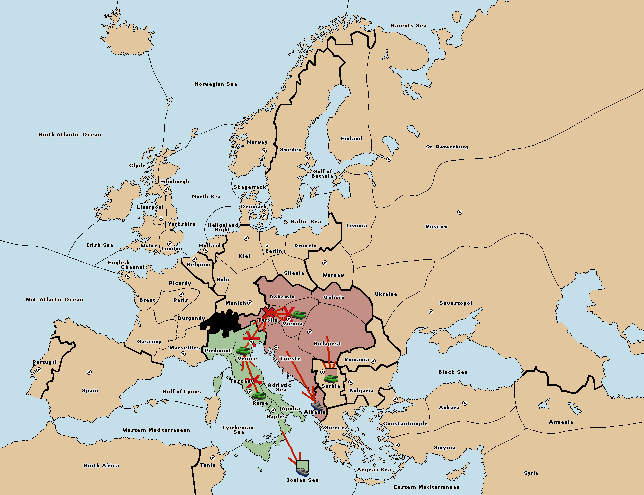 The fleet at Adriatic Sea support move to Trieste from Tyrolia.