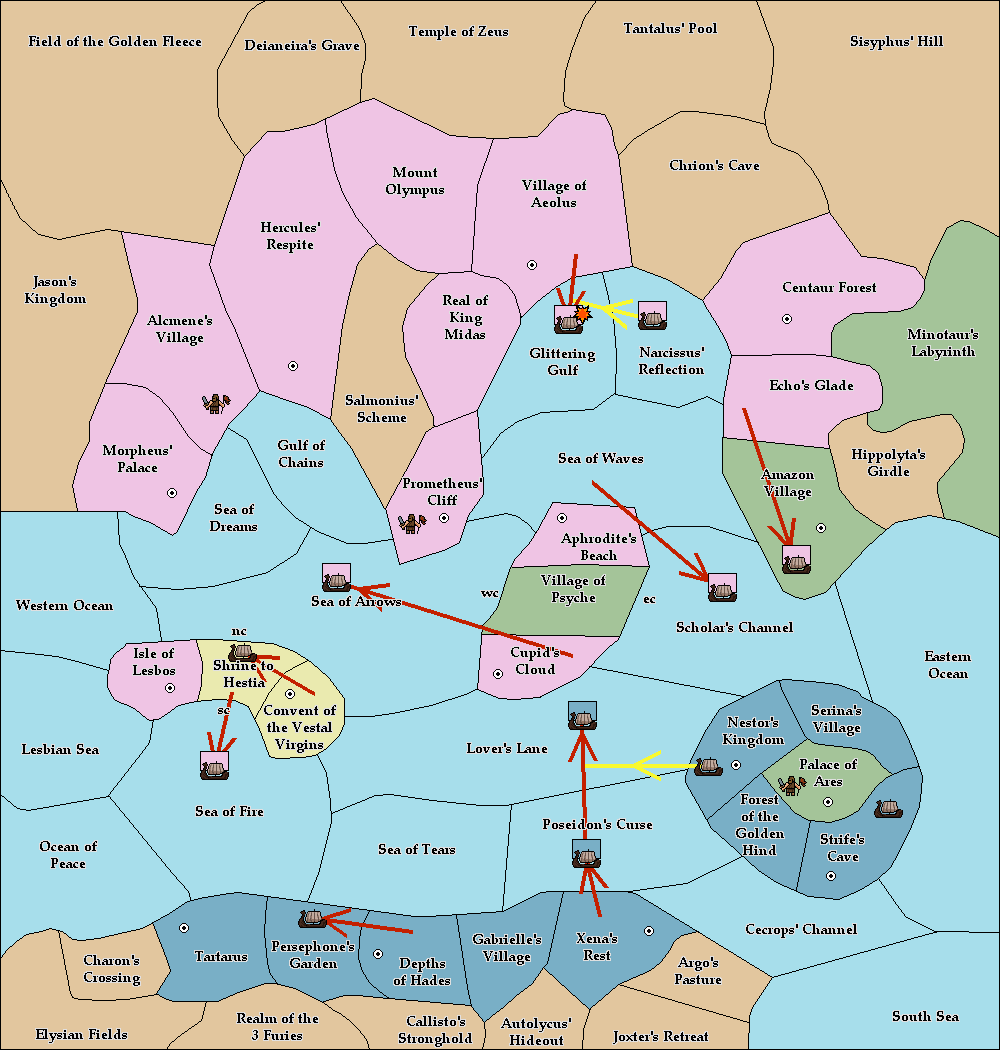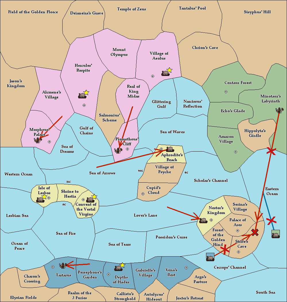 The fleet at Isle of Lesbos support move to Sea of Arrows from Cupid's Cloud.