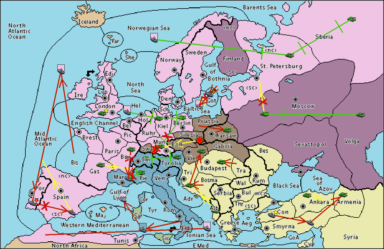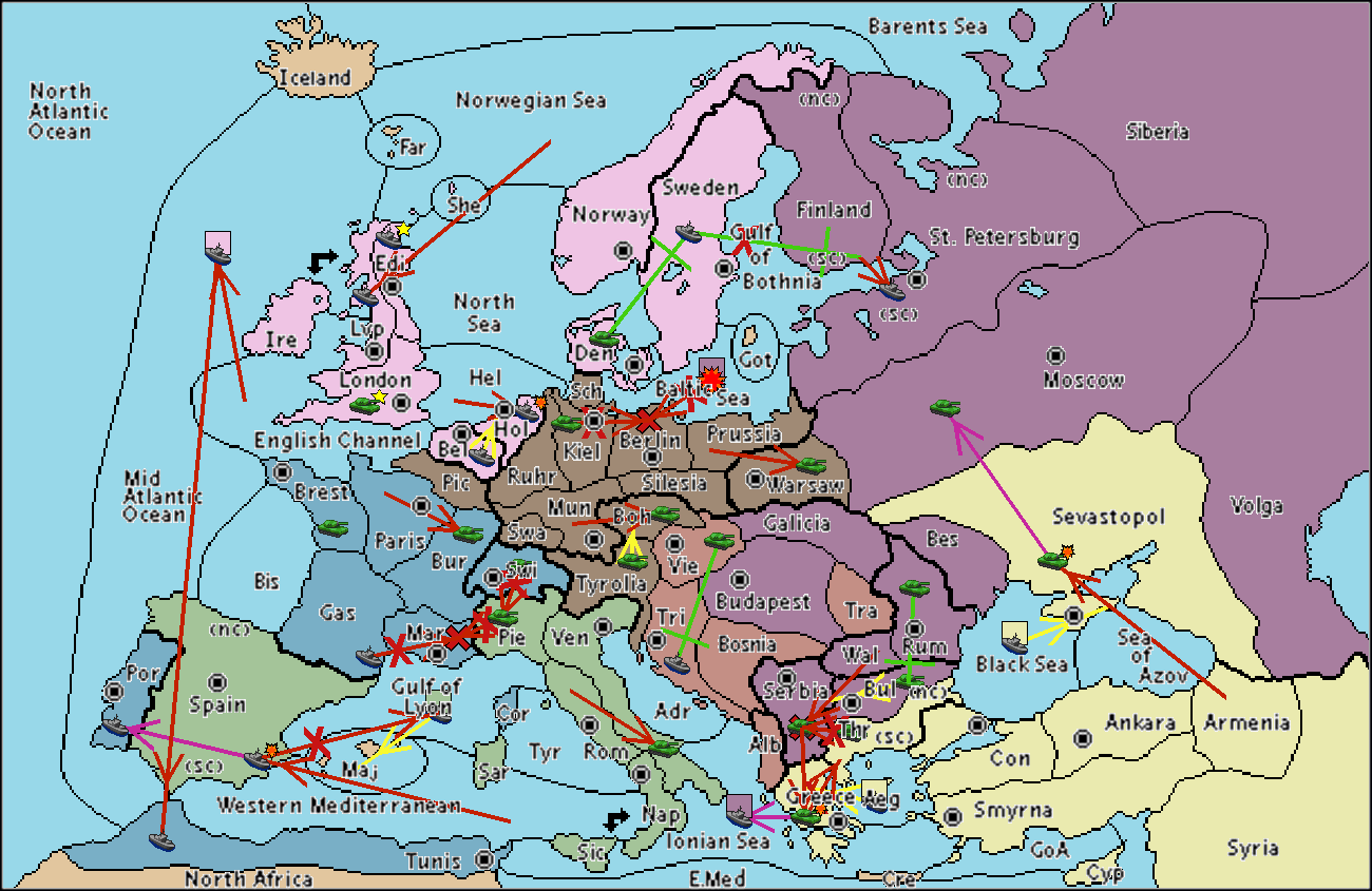 The fleet at Spain (South Coast) support move to Gulf of Lyon from Marseilles.